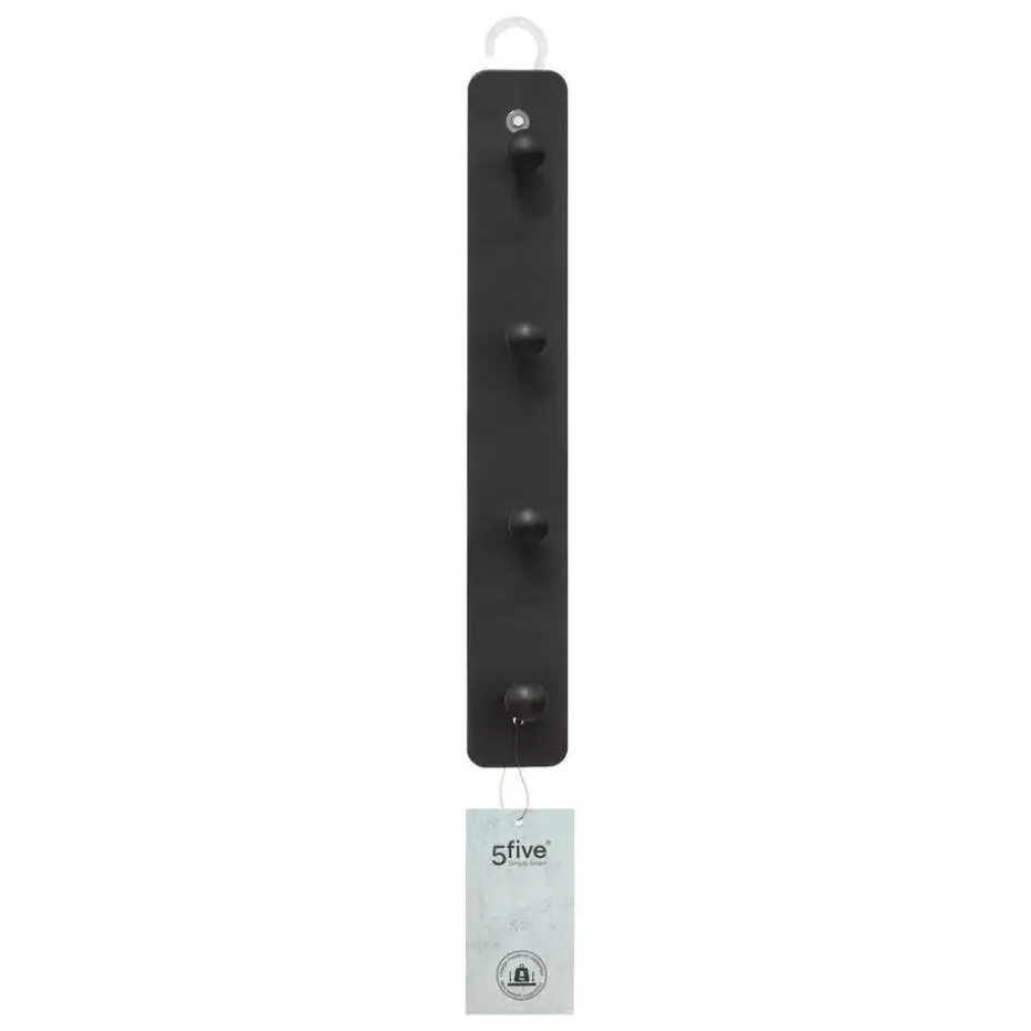 Kapstok rek voor aan de muur/wand in de kleur zwart. Ideaal om je jassen, kleding en/of hoofddeksels aan op te hangen, dankzij de 4x stuks ophanghaken / knoppen is er genoeg ruimte om diverse stukken op te hangen. Afmeting: B35 x H5 cm. Materiaal: metaal. Wandkapstokken. Merk: 5Five. Home storage artikelen.