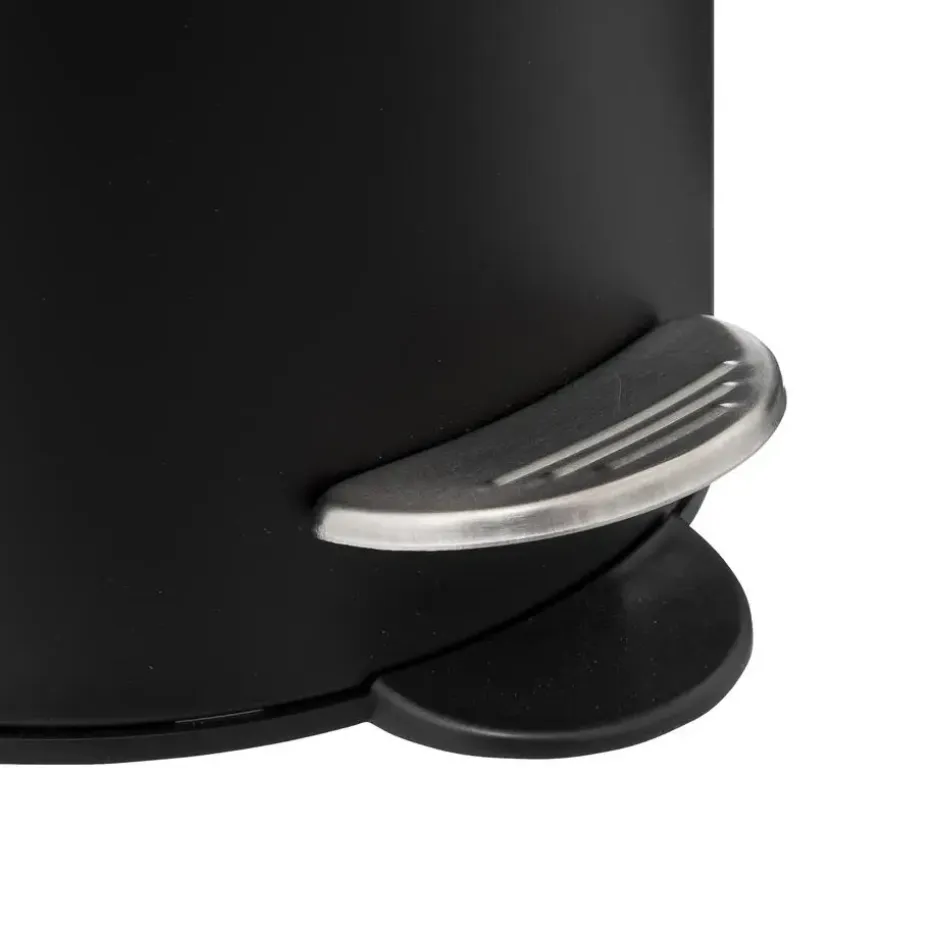 5Five Prullenbak/pedaalemmer in de kleur zwart, gemaakt van metaal met inhoud 3 liter en afmetingen 17 x 23 cm. Geschikt voor badkamer en toilet. Deze kleine pedaalemmers hebben een uitneembare binnenbak en een soft close systeem.