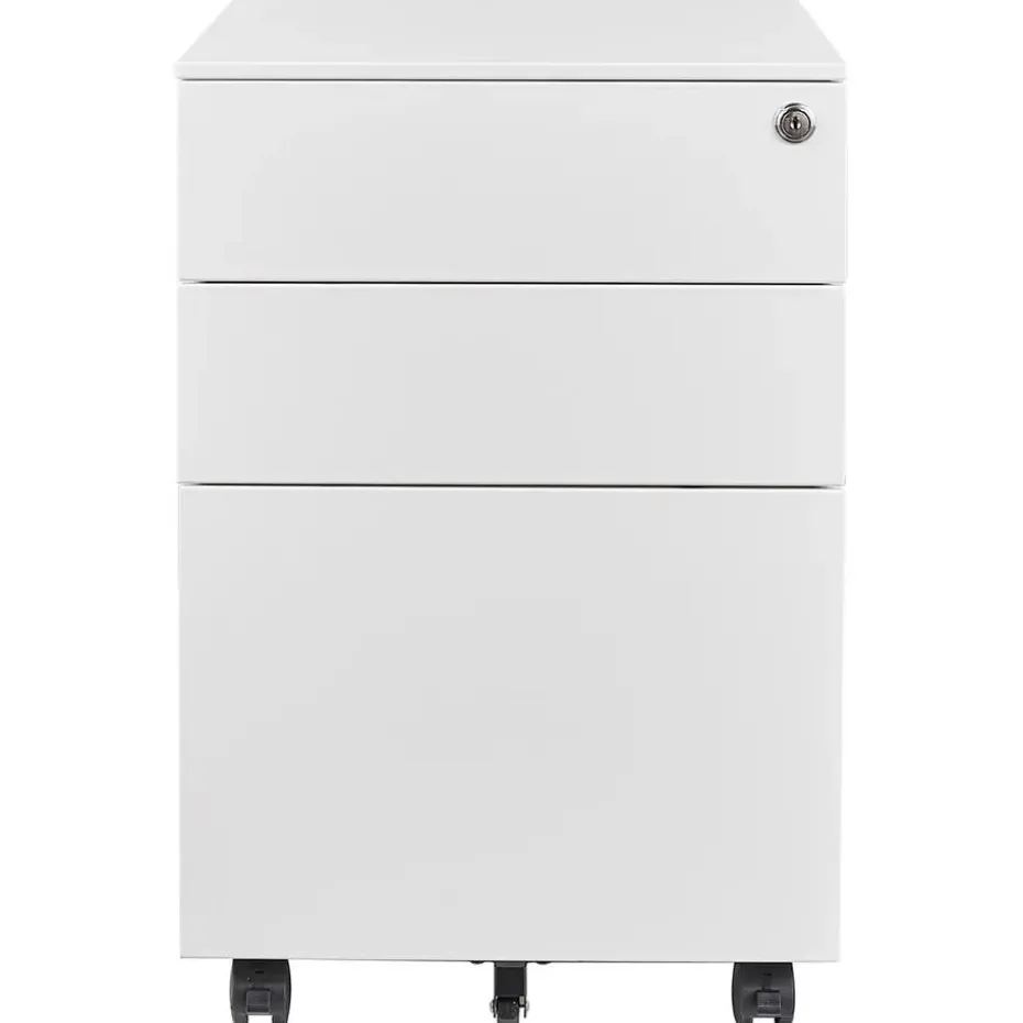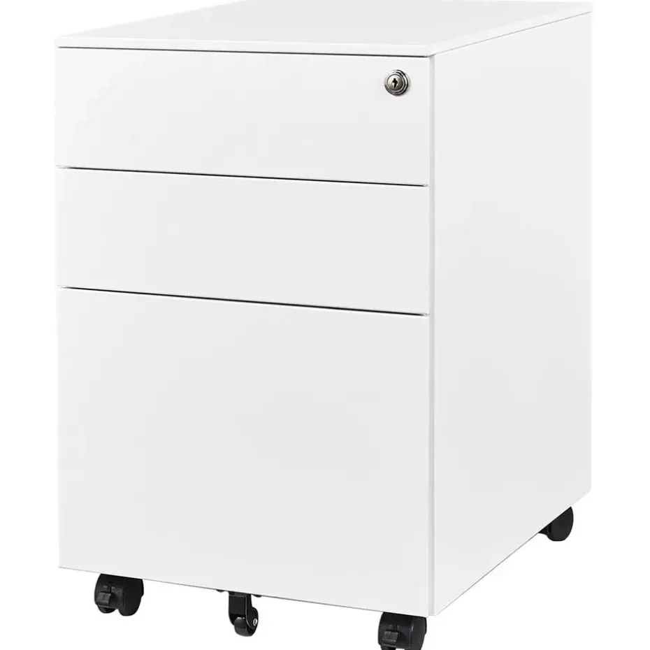 Hoewel tegenwoordig veel digitaal is, heb je toch nog papierwerk, schrijfmateriaal en andere accessoires nodig tijdens het werk. Deze bureaukast is voorzien van 3 lades, waarvan 1 archieflade en 1 lade met een slot. De bovenste lade is afsluitbaar door een unieke sleutel. Zo berg je gemakkelijk al jouw waardevolle items op. De tweede lade kun je gebruiken voor al jouw schrijfmaterialen en andere accessoires. De onderste lade is voorzien van een rek, waaraan je hangmappen kan hangen.