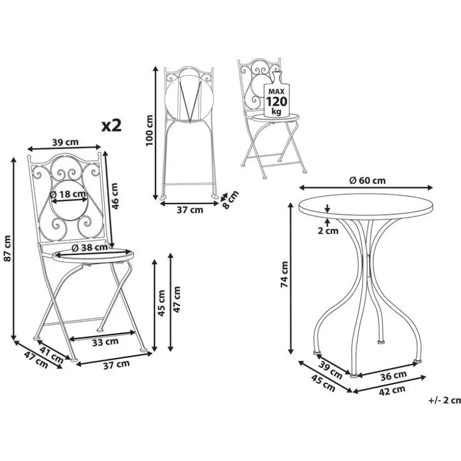 Belangrijkste eigenschappen: Elegant accentstuk, Speciaal gemaakt voor gebruik buitenshuis, Stabiele en duurzame constructie, Opgevouwen op te bergen, Neemt weinig ruimte in beslag