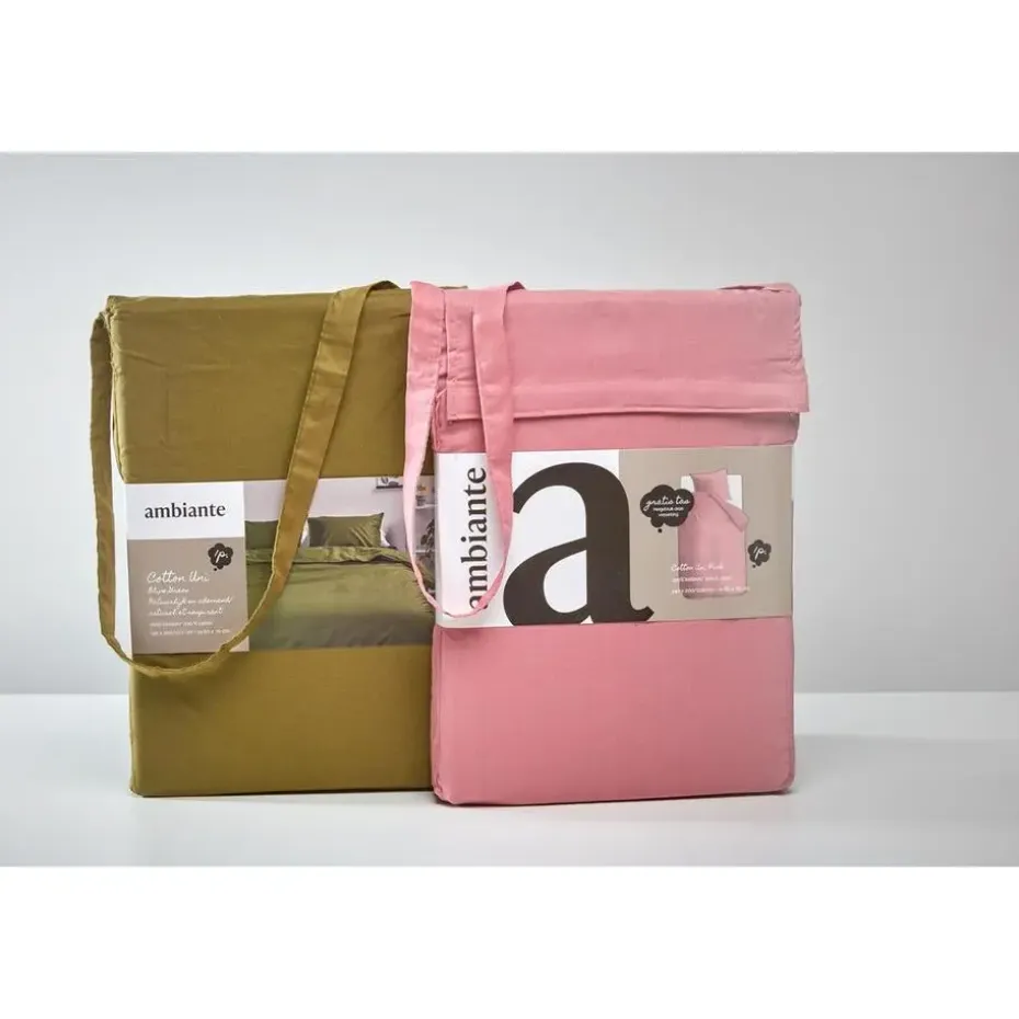 Het dekbedovertrek is gemaakt van 100% katoen, 144 TC. Het dekbedovertrek heeft over de gehele breedte aan beide zijden een dubbele instopstrook. De totale lengte van een Ambiante katoenen dekbedovertrek is 240 cm. Het overtrek is geschikt voor dekbedden van 200 cm, 210 cm of 220 cm.