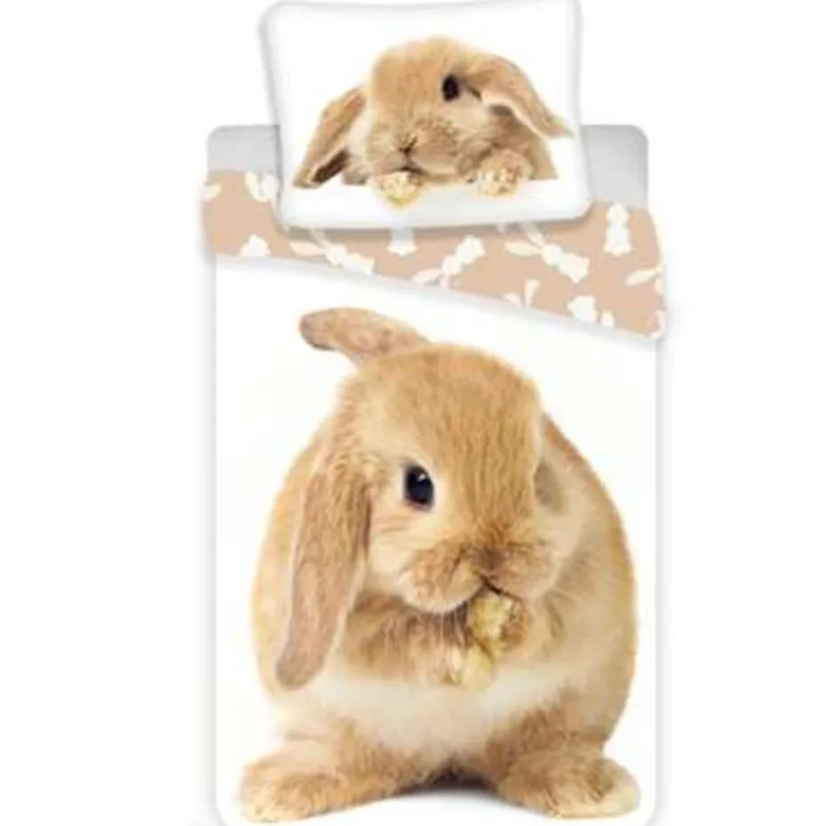 Animal Pictures Dekbedovertek, Konijn. Dit schattige konijntje is zich aan het wassen. Konijnen zijn schone en nieuwsgierige dieren die erg goed als huisdier kunnen worden gehouden. Zit een huisdier er toch echt niet in of kun je geen genoeg van konijnen krijgen? Dit dekbedovertrek is er om in je wens te voorzien. De katoenen stof ademt goed en is heerlijk om onder te slapen. Dit is een leuk cadeau voor een konijnenliefhebber!
