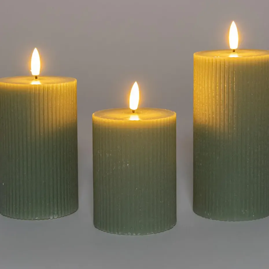 Deze LED kaarsen/stompkaarsen set bevat 3 stuks kaarsen in een prachtige kleur: jade groen en hebben een ribbel effect. De kaarsen zijn gemaakt van hoogwaardig materiaal en geven een mooi, warm licht. Ze zijn veilig om te gebruiken omdat ze geen hitte of rook produceren. De set wordt geleverd met 3 verschillende groottes. waardoor je verschillende decoratieve opties hebt. Geniet van de sfeer die deze LED kaarsen geven. Formaat kaarsen: 7,5 x 10, 7,5 x 12,5 en 7,5 x 15 cm. Voeding per kaars: 3 AAA batterij (niet inbegrepen). – Inclusief afstandsbediening- warm wit licht- mooie ribbel afwerking