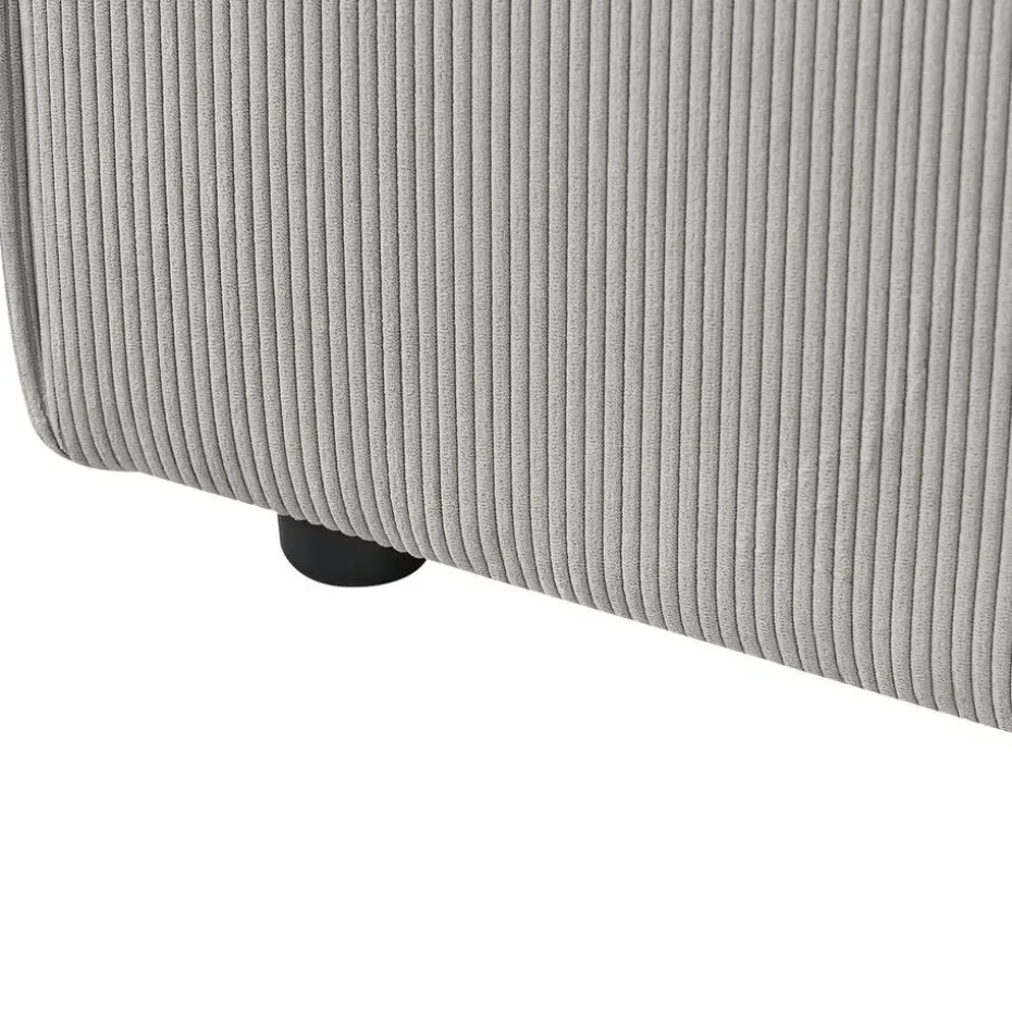 Extra informatie: Houd er rekening mee dat corduroy-stof er een beetje anders uit kan zien wanneer het wordt blootgesteld aan verschillende soorten licht – het heeft de neiging meer te glinsteren bij daglicht en ziet er meer afgezwakt uit bij kunstlicht binnenshuis.