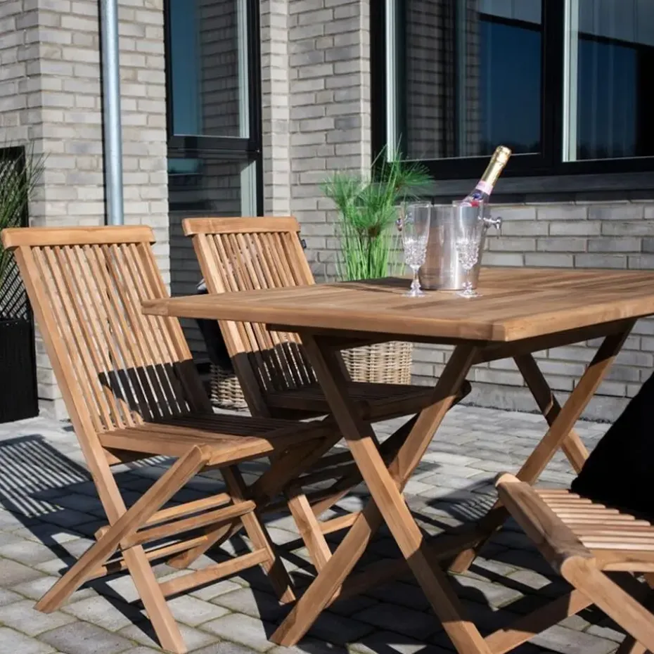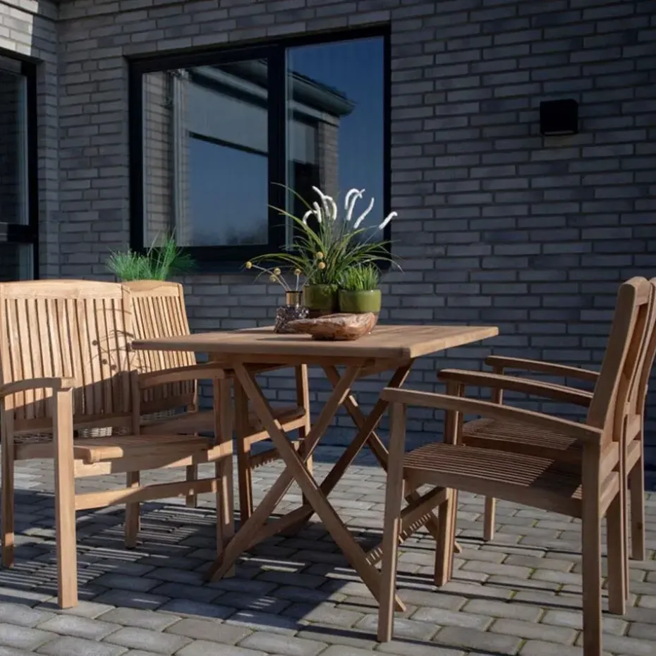 De Jane tuintafel biedt genoeg ruimte aan vier personen en is heel goed te combineren met de Jildou tuinstoelen. Dan heb je een complete tuinset. De tuintafel is gemaakt van teakhout en is daardoor uitermate geschikt voor buiten. We raden wel aan de tuintafel na het tuinseizoen binnen op te slaan voor het behoud van je tafel.