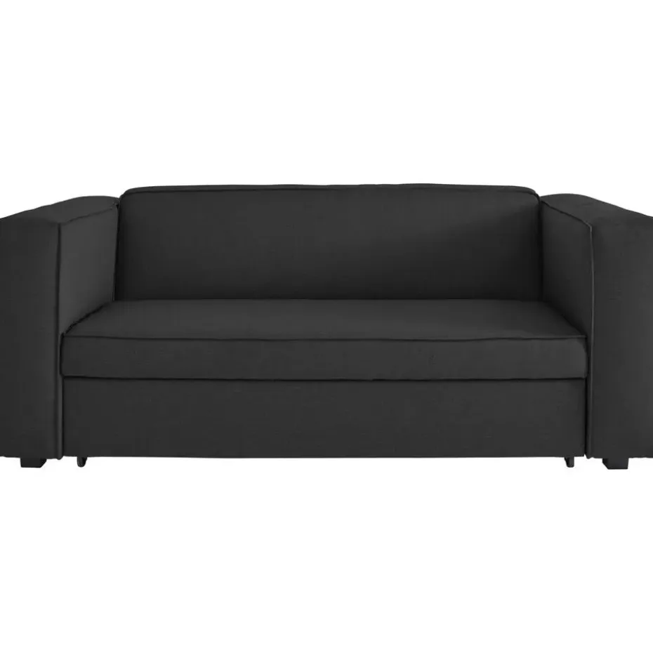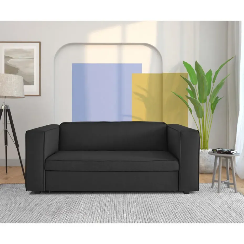 De matras heeft een afmeting van ongeveer 160 × 202 cm en rolt soepel uit onder de zitting, waardoor het opzetten snel en eenvoudig is. Deze slaapbank is perfect voor kleine ruimtes, logeerkamers of voor wie op zoek is naar een functioneel en stijlvol meubelstuk. Het biedt comfort en gemak in één slim ontwerp.
