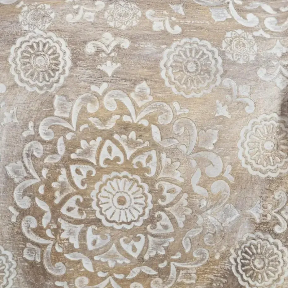 Olifanten dierenbeeldje/woondecoratie. Dit beige witte beeldje van een Indische olifant is versierd met mooie Mandala details en is geschikt als woondecoratie voor binnen. Afmeting: 27 x 12 x 21 cm. Materiaal: polyresin.