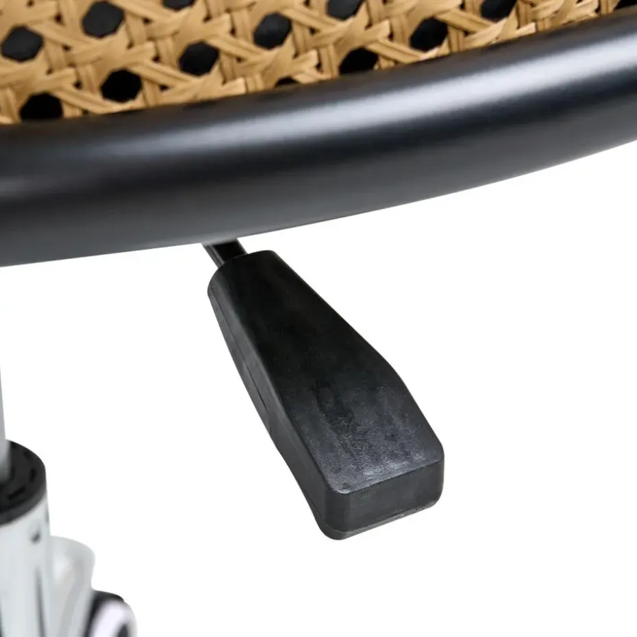 Belangrijkste eigenschappen: 360° draaibaar, De veiligheidsremfunctie vergrendelt wielen voor veiligheid, ontgrendelt voor mobiliteit, Pneumatisch verstelbare zithoogte, Traditioneel design met een moderne twist, Stabiele en duurzame constructie