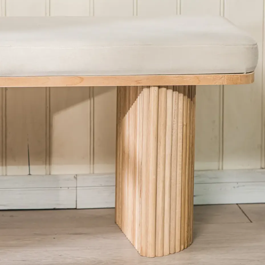 De Banc Entrée Chambre Scandinave Bois velours beige is een prachtige toevoeging aan uw interieur. Met zijn strakke Scandinavische design past hij perfect in elke kamer, of het nu de slaapkamer, kantoor, woonkamer of entree is. De ronde zitting van massief hout biedt een hoog comfort. De stevige structuur van gecertificeerd FSC essenhout zorgt voor stabiliteit en duurzaamheid. Dit product is gemakkelijk te onderhouden, een vochtige doek is voldoende om het schoon te maken.