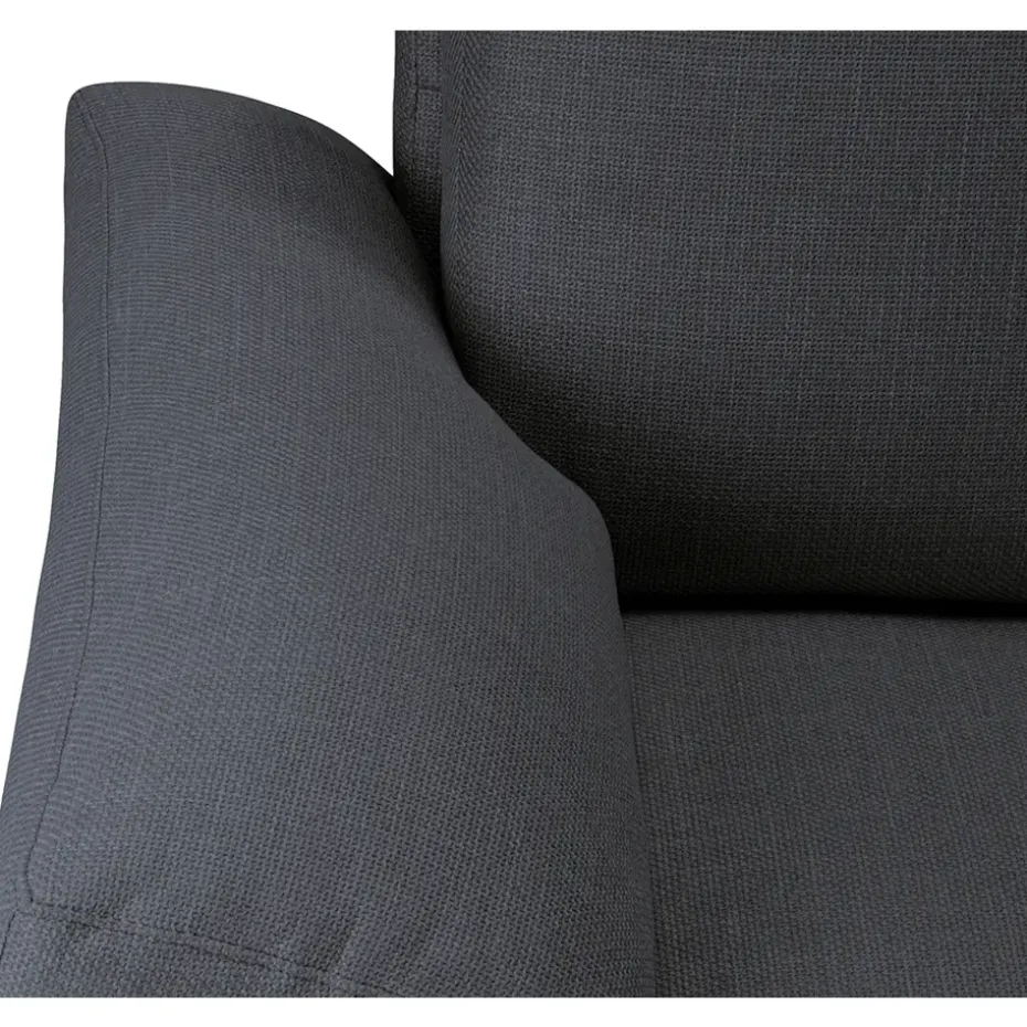 Bank Tom heeft een sfeervolle Scandinavische uitstraling uitgevoerd in een antracietkleurige stof genaamd Basel. De bank heeft slanke poten en is voorzien van een chaise longue aan de linkerkant. Bank Tom biedt ruimte genoeg om met meerdere mensen op te zitten.