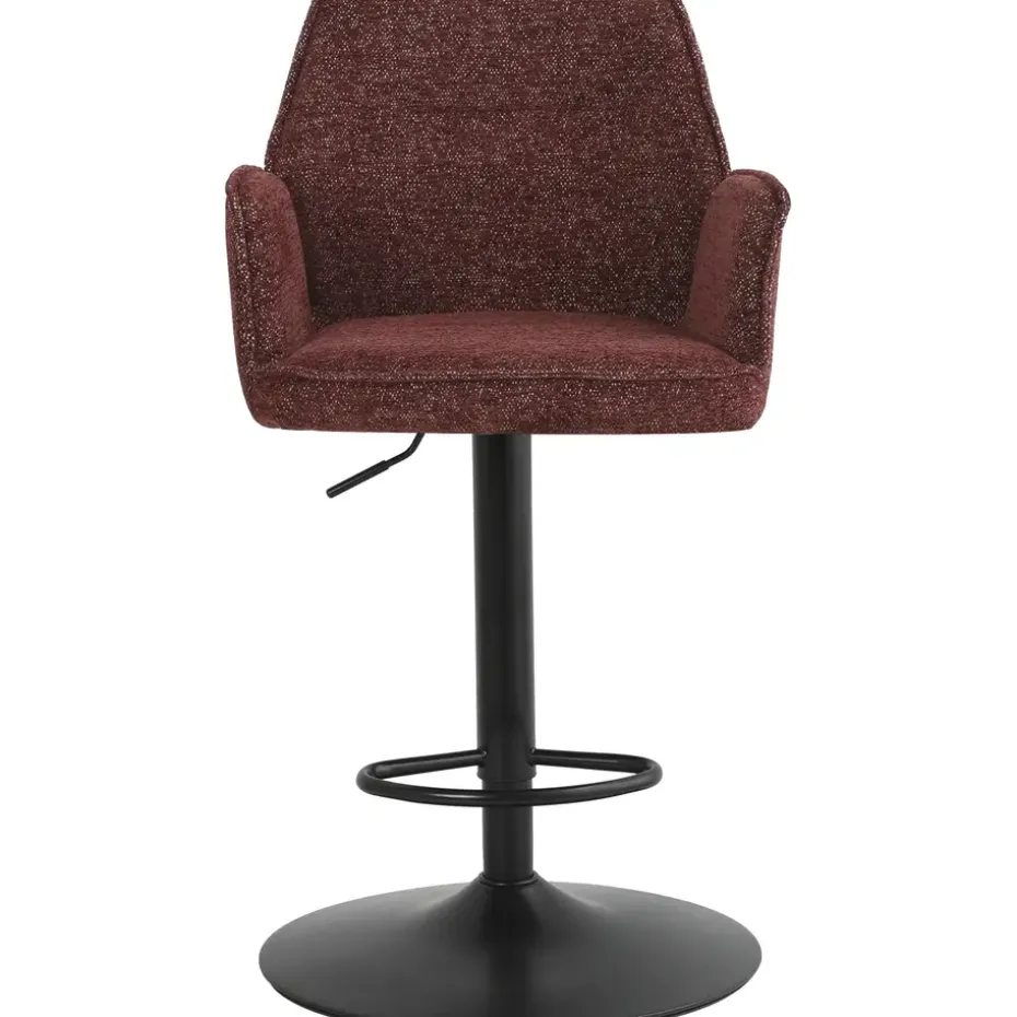 Barkruk Raffy is een tijdloze barkruk die mooi aansluit in jouw interieur. De kruk is bekleed met een heerlijke stof in de kleur wijnrood. Hij staat stevig op een verstelbare poot van zwart metaal en is verstelbaar naar verschillende hoogtes. Door het hoog zitcomfort van deze barkruk kun je uren zitten aan je bar of kookeiland. De barkruk is ook voorzien van armleuningen, zo kan je ook comfortabel dineren. Door de zachte stof en de kleur, past Raffy perfect in ieder interieur.