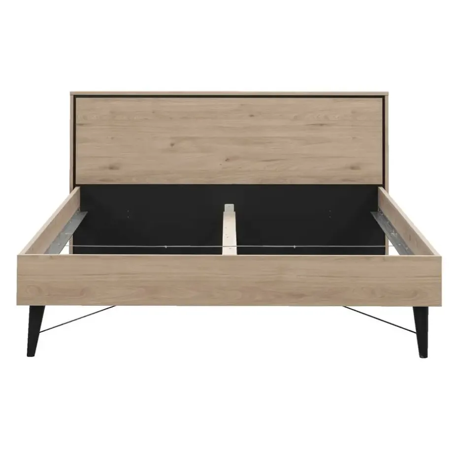 Bed Kansas is eiken van kleur en zorgt daardoor voor rust in elke slaapkamer. Dit bed is geschikt voor een matras van 180x200cm groot, heeft een strak design en is gemaakt van spaanplaat. Het bed past door zìjn strakke design ideaal in verschillende interieurstijlen.