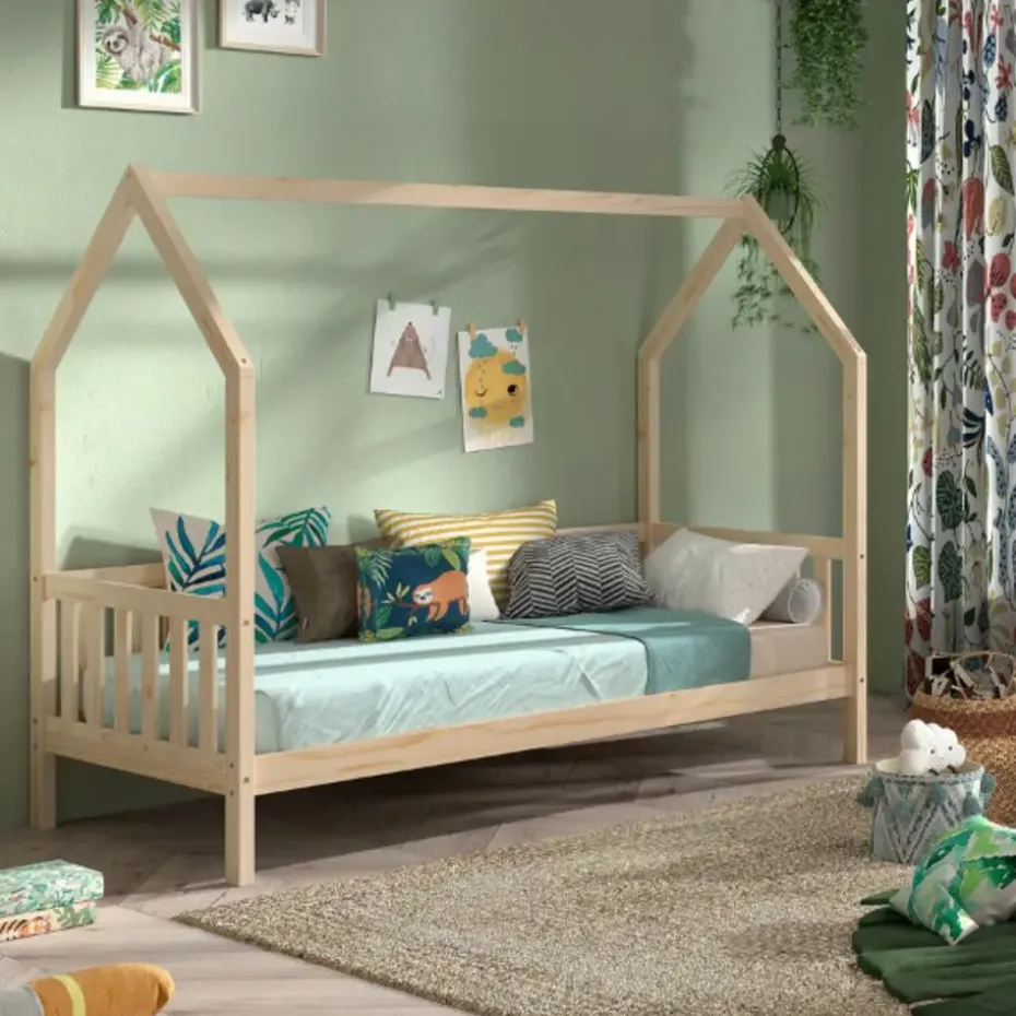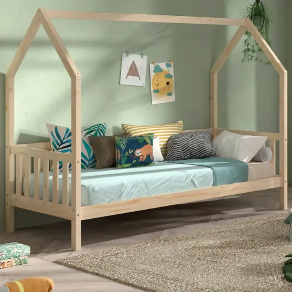 Gun jouw kind zijn of haar eigen huisje met dit bedhuisje Home. Het bed is gemaakt uit massief dennenhout en is uitgerust met een lattenbodem van 90x200cm. Het hekje langs drie kanten kan dienen als uitvalbeveiliging, en hierdoor kan je het bed ook gebruiken als zitbank. Ga samen met je zoon of dochter nog op zoek naar enkele leuke accessoires of een mooie lichtslinger en personaliseer jouw nieuwe bed volledig naar wens! Optioneel kan je bij dit bed nog een handige lade bestellen voor meer opbergruimte. De matras is bij dit bed niet inbegrepen.