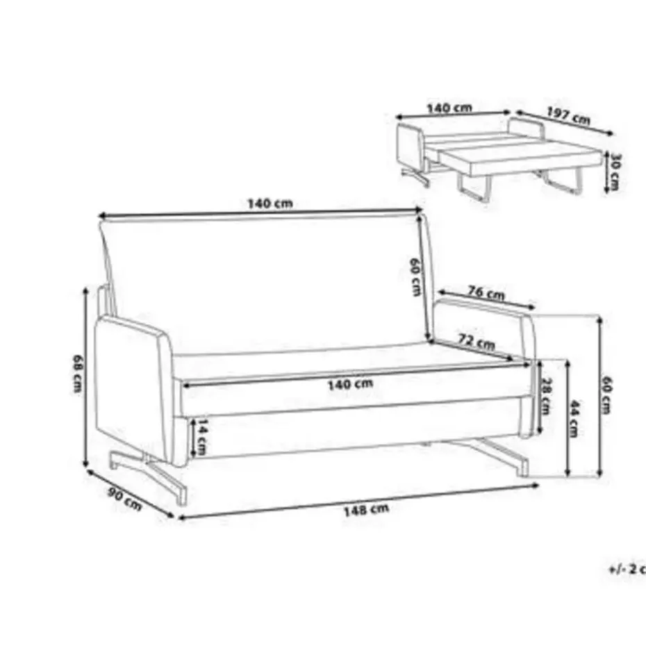 Belangrijkste eigenschappen: Zeer gemakkelijk te veranderen in een bed, Afneembare kussensloop, Zeer comfortabel, Brede, dik gestoffeerd zitvlak, Chique uitstraling, Stabiele en duurzame constructie