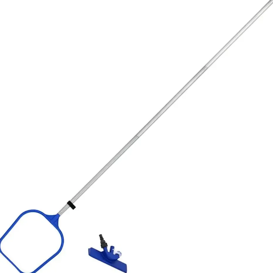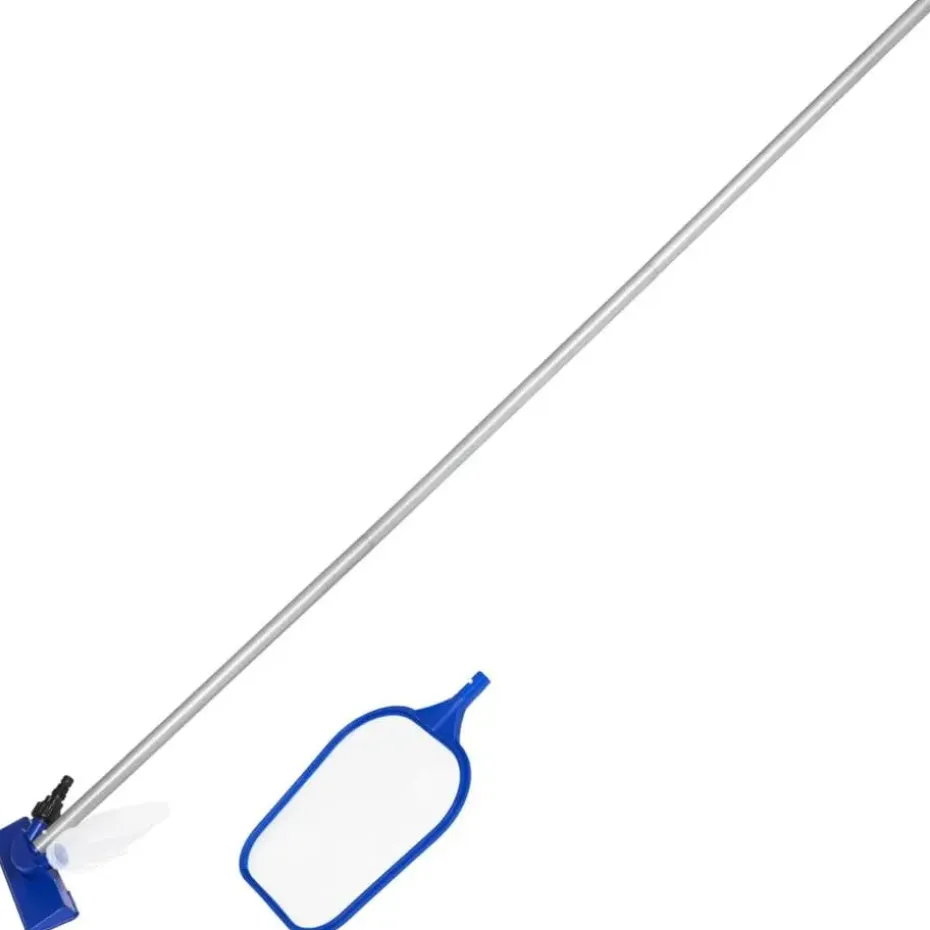 Deze set bevat een 4-delige stok, verwisselbare zwembadzuigkop en skimmerkop. De bladskimmer vangt alle soorten afval, bladeren, vuil en andere voorwerpen die in het zwembad drijven efficiënt op. De zuigkop kan aan elke standaard tuinslang worden bevestigd om vuil op te vangen in de bevestigde zak.