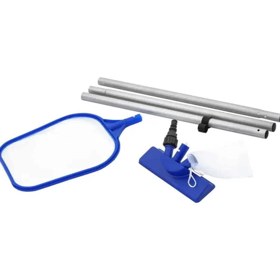 Deze Bestway Flowclear zwembadonderhoudsset biedt zwembadbezitters een eenvoudige reinigingsoplossing. Je bovengrondse zwembad met de hand reinigen, is verleden tijd.