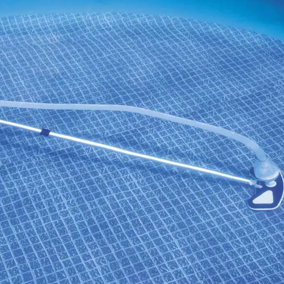 Bevestig hem eenvoudig aan je filterpomp en je hebt een krachtige, lichtgewicht zuiger met een extra lange slang tot je beschikking, om je zwembadwand en -vloeren gemakkelijk schoon te maken. Het meegeleverde schepnet verwijdert bladeren terwijl de zuiger algen, vuil en viezigheid opzuigt. Dankzij de extra lange aluminium stang kunnen de zuiger en het schepnet moeilijk bereikbare delen van bovengrondse zwembaden reinigen. Vuil wordt verzameld in een verwijderbare en herbruikbare vuilzak.