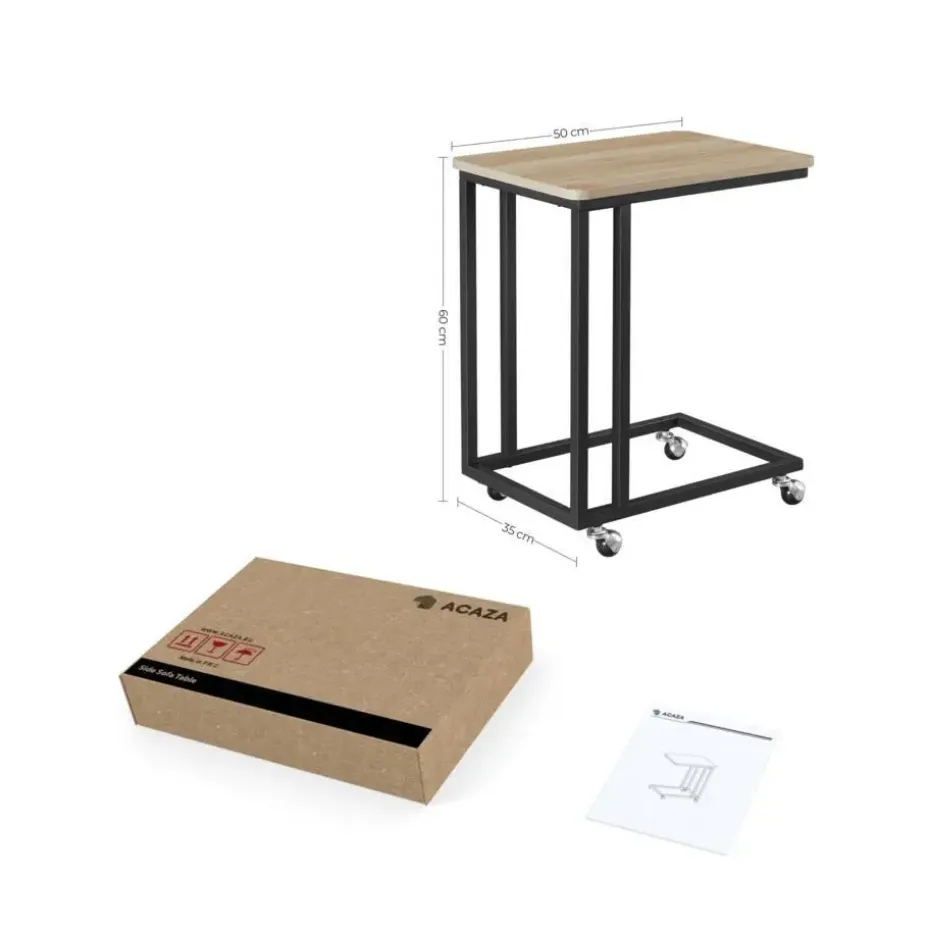 Dit bijzettafeltje van ACAZA is ultra-handig én mooi. Met dit tafelblad heeft u steeds uw favoriete snacks, magazines of boeken bij de hand. Het onderstel met wieltjes zorgt ervoor dat u dit tafeltje onder éénder welke sofa of bed kan schuiven.