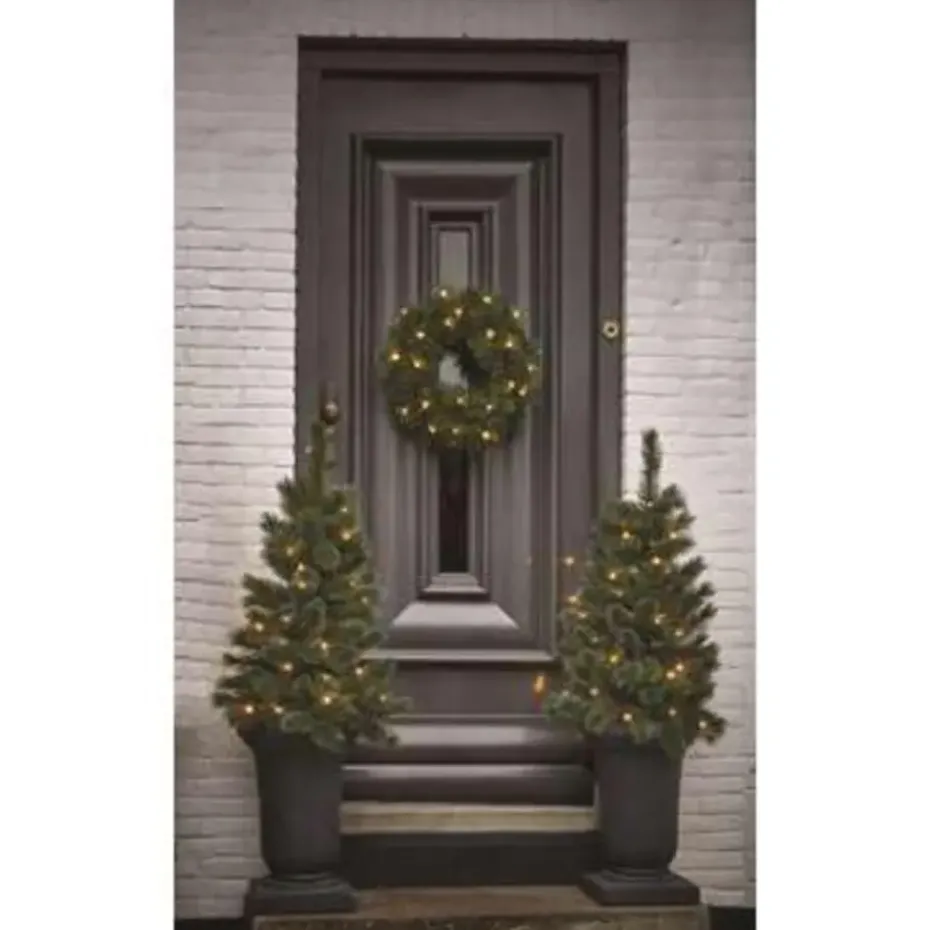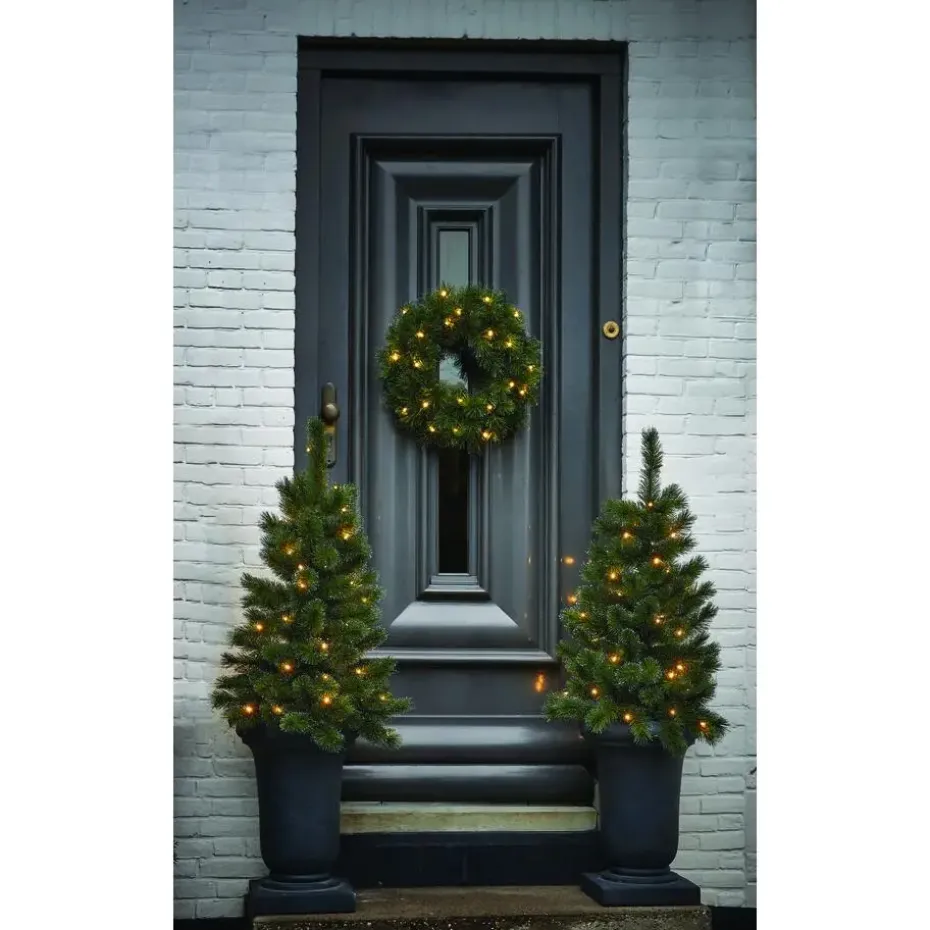 Haal de kerst in huis met het dennengroen van deze Glendon krans uit de collectie van Black Box Trees. De kerstkrans heeft natuurlijke. bruine takjes met daaraan stevige naaldjes die tot in detail zijn nagemaakt. Door de witte puntjes lijkt het daarnaast net alsof hij bevroren is. Dat past helemaal in de winterse sfeer! De krans is van zichzelf al mooi. maar wordt nog specialer met wat extra decoraties. Versier hem zoals jij dat mooi vindt! Voor het gemak is hij wel al voorzien van 30 warm witte LED lampjes. De verlichting werkt op batterijen. dus je bent niet afhankelijk van een stopcontact. Leuk om op de deur te hangen. of leg hem op de kast als basis voor een kerststukje. De krans heeft een diameter van 60 cm en wordt geleverd met 2 jaar garantie. Dat wordt gegarandeerd genieten!