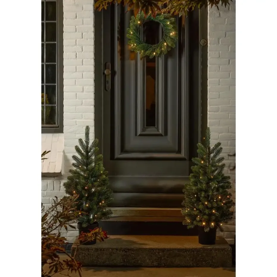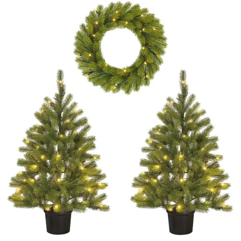 - Complete set met twee kerstboompjes en één krans voor een instant kerstsfeer