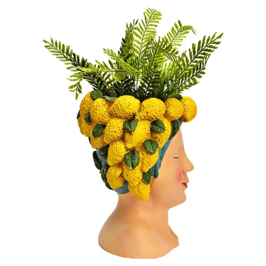 Geef je interieur een unieke en artistieke touch met deze bijzondere bloempot/vaas in de vorm van een vrouwenhoofd, met citroenen. Dit prachtige keramische kunstwerk is met oog voor detail ontworpen en afgewerkt in een levendige rode kleur. Dankzij de royale afmetingen van 22 x 28 x 21 cm is deze vaas perfect voor (kunst)bloemen, planten of als decoratief object op zichzelf. Een echte blikvanger die charme en karakter toevoegt aan elke ruimte. Ideaal voor liefhebbers van kunstzinnige en opvallende decoratie!