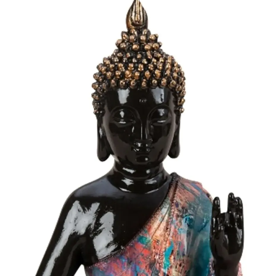 Boeddha decoratie beeld Colorfull, zittend in meditatie houding, voor huis of tuin gemaakt van polyresin kunststeen met gelakte finish zodat pure kunst is, met afmetingen van ongeveer 18 x 31 cm. Geschikt voor binnen en buiten. Kleur: zwart/kleurenmix. Dit boeddha beeld past goed in tuin/interieur en straalt rust en beheersing uit, en is gewoon mooi. U wordt er rustig/relaxed van als u er naar kijkt. Boeddha woon/tuinaccessoires beelden zijn ook zeer geschikt als cadeau.