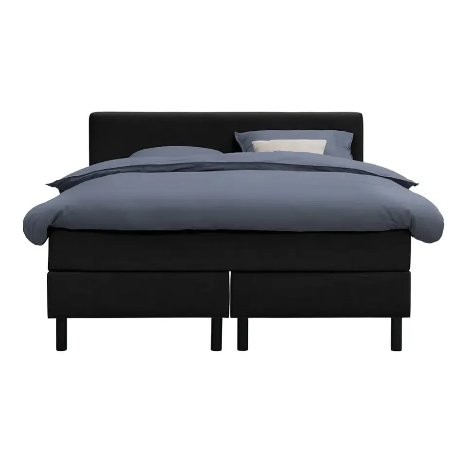 Boxspring Varberg met hoofdbord is een complete boxcombinatie en wordt geleverd inclusief pocketvering matras en een comfortschuim topmatras. Deze combinatie zorgt voor een optimale ondersteuning en een heerlijk ligcomfort. Dankzij de zwarte kleur past deze boxspring perfect in een moderne slaapkamer en creëert het een stijlvolle uitstraling.