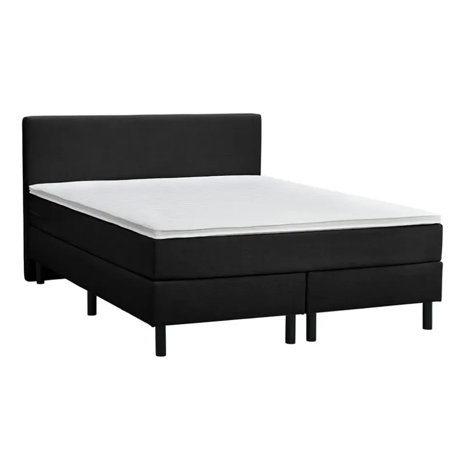 Boxspring Varberg met hoofdbord is een complete boxcombinatie en wordt geleverd inclusief pocketvering matras en een comfortschuim topmatras. Deze combinatie zorgt voor een optimale ondersteuning en een heerlijk ligcomfort. Dankzij de zwarte kleur past deze boxspring perfect in een moderne slaapkamer en creëert het een stijlvolle uitstraling.