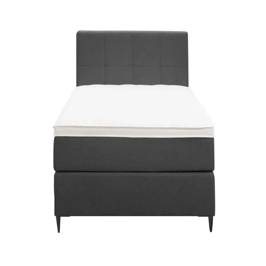 Boxspring Liv is een boxspring met een afmeting van 90×200 cm. Deze prachtige boxspring is bekleed met een grof geweven antraciete stof en heeft een landelijke uitstraling met een geblokt hoofdbord. De Liv geblokt is uitgerust met een pocketveringmatras en daarnaast ook nog een koudschuim topdekmatras voor extra comfort. Het pocketveringmatras is omkeerbaar, bestaande uit zowel een medium- als een stevige kant. Hierdoor kun je zelf kiezen wat voor jou het meest comfortabel ligt.