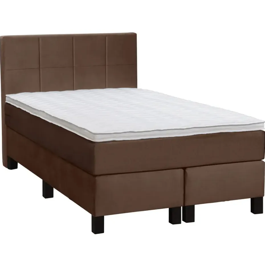 Boxspring Liv is een boxspring met een afmeting van 120×200 cm. Deze prachtige boxspring is bekleed met een velvet bruine stof en heeft een landelijke uitstraling met een geblokt hoofdbord. De Liv geblokt is uitgerust met een pocketveringmatras en daarnaast ook nog een koudschuim topdekmatras voor extra comfort. Het pocketveringmatras is omkeerbaar, bestaande uit zowel een medium- als een stevige kant. Hierdoor kun je zelf kiezen wat voor jou het meest comfortabel ligt.