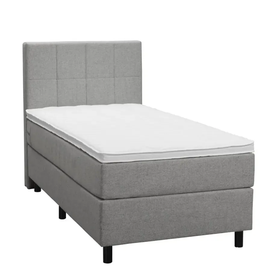 Boxspring Liv is een boxspring met een afmeting van 90×200 cm. Deze prachtige boxspring is bekleed met een fijn geweven lichtgrijze stof en heeft een landelijke uitstraling met een geblokt hoofdbord. De Liv geblokt is uitgerust met een pocketveringmatras en daarnaast ook nog een koudschuim topdekmatras voor extra comfort. Het pocketveringmatras is omkeerbaar, bestaande uit zowel een medium- als een stevige kant. Hierdoor kun je zelf kiezen wat voor jou het meest comfortabel ligt.