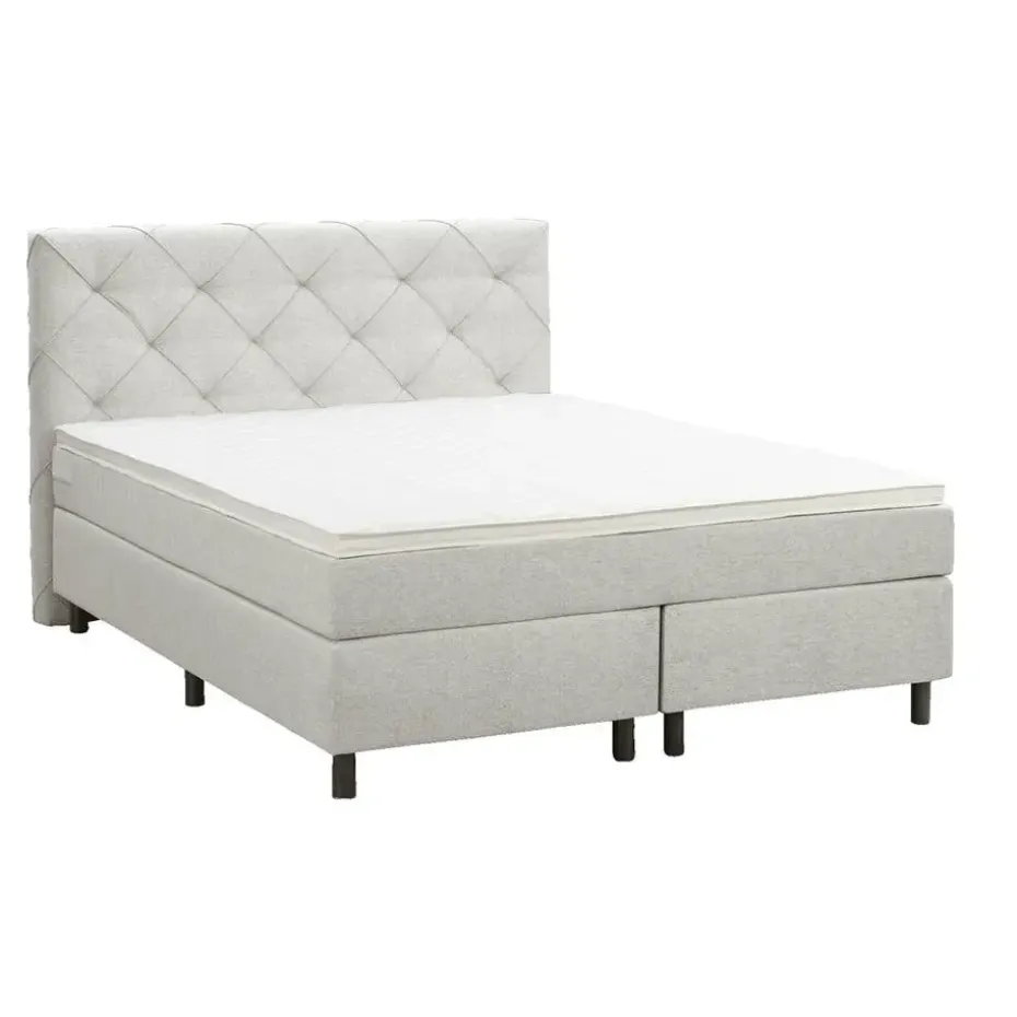 Boxspring Liv is een boxspring met een afmeting van 140×200 cm. Deze prachtige boxspring is bekleed met een fijn geweven ecru stof en heeft een romantische uitstraling met een geruit hoofdbord. De Liv geruit is uitgerust met een pocketveringmatras en daarnaast ook nog een koudschuim topdekmatras voor extra comfort. Het pocketveringmatras is omkeerbaar, bestaande uit zowel een medium- als een stevige kant. Hierdoor kun je zelf kiezen wat voor jou het meest comfortabel ligt.