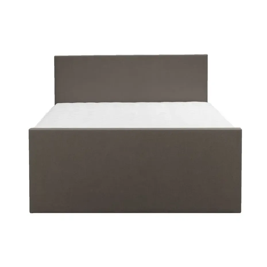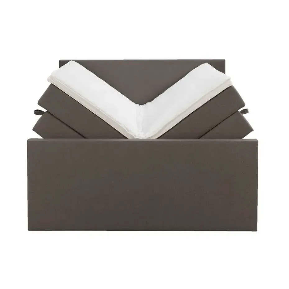 Boxspring met opbergruimte Liv is een boxspring met een afmeting van 140×200 cm. Deze prachtige boxspring is bekleed met een grof geweven donkerbruine stof en heeft een strakke uitstraling met een egaal hoofd- en voetbord. De Liv egaal is uitgerust met een pocketveringmatras en daarnaast ook nog een koudschuim topdekmatras voor extra comfort. Het pocketveringmatras is omkeerbaar, bestaande uit zowel een medium- als een stevige kant. Hierdoor kun je zelf kiezen wat voor jou het meest comfortabel ligt.