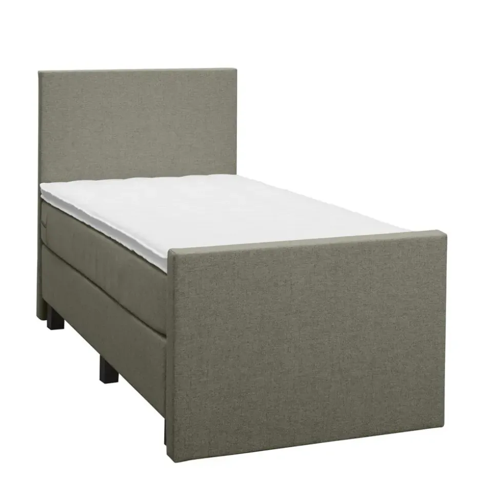 Boxspring Liv is een boxspring met een afmeting van 90×200 cm. Deze prachtige boxspring is bekleed met een fijn geweven groene stof en heeft een strakke uitstraling met een egaal hoofd- en voetbord. De Liv egaal is uitgerust met een pocketveringmatras en daarnaast ook nog een koudschuim topdekmatras voor extra comfort. Het pocketveringmatras is omkeerbaar, bestaande uit zowel een medium- als een stevige kant. Hierdoor kun je zelf kiezen wat voor jou het meest comfortabel ligt.