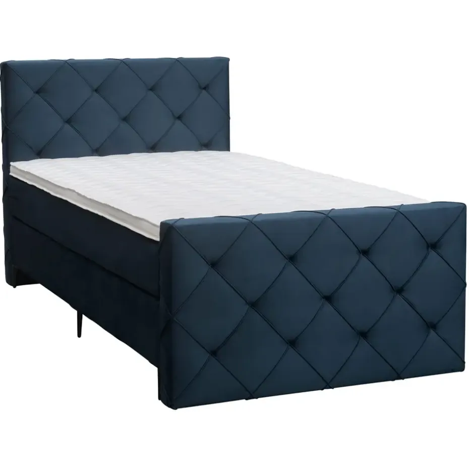 Boxspring Liv is een boxspring met een afmeting van 120×200 cm. Deze prachtige boxspring is bekleed met een velvet blauwe stof en heeft een romantische uitstraling met een geruit hoofd- en voetbord. De Liv geruit is uitgerust met een pocketveringmatras en daarnaast ook nog een koudschuim topdekmatras voor extra comfort. Het pocketveringmatras is omkeerbaar, bestaande uit zowel een medium- als een stevige kant. Hierdoor kun je zelf kiezen wat voor jou het meest comfortabel ligt.