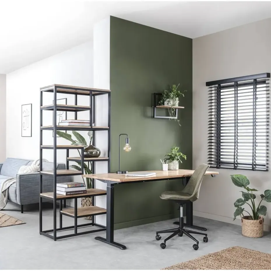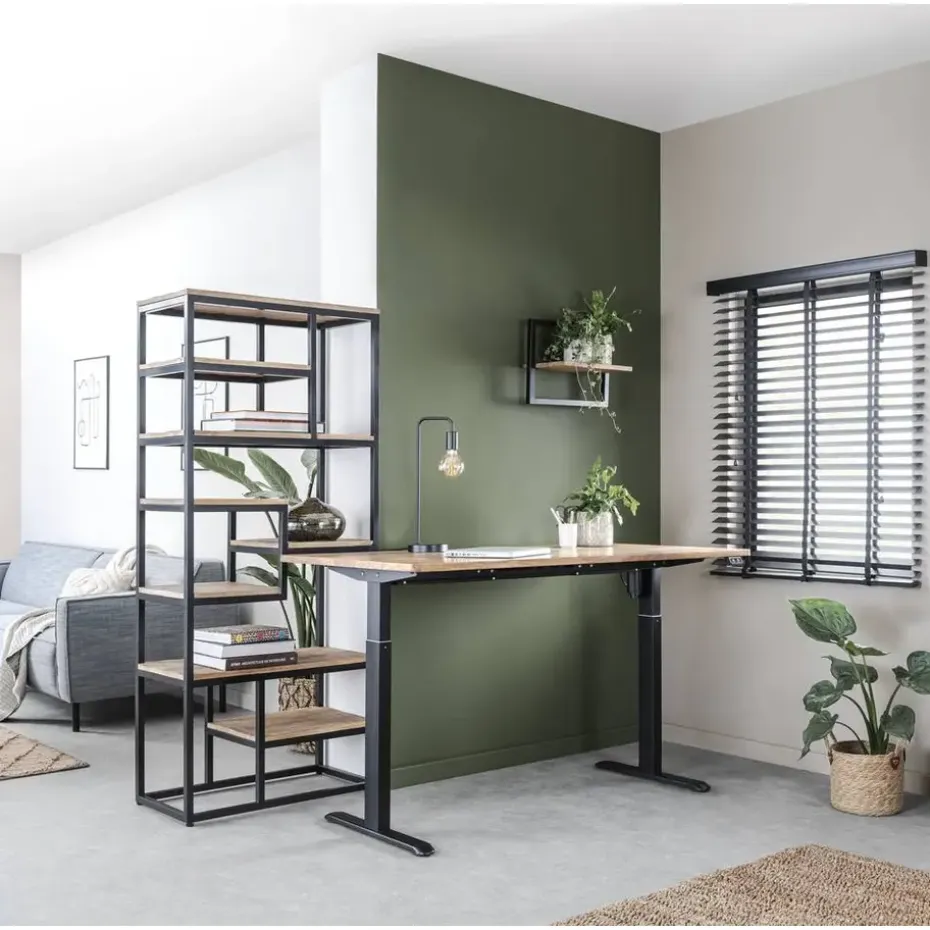 Bureau Homeworx is een eigentijds en modern zit/sta bureau. Het bureaublad is gemaakt van licht mangohout met een zwart metalen onderstel. Dit is een ideale aanvulling voor een werkplek bij je thuis. Door de zit/sta functionaliteit creëer je zo een ergonomische werkplek die past bij jouw interieur. Het paneel om het bureau in hoogte te verstellen is zowel links als rechts te plaatsen.