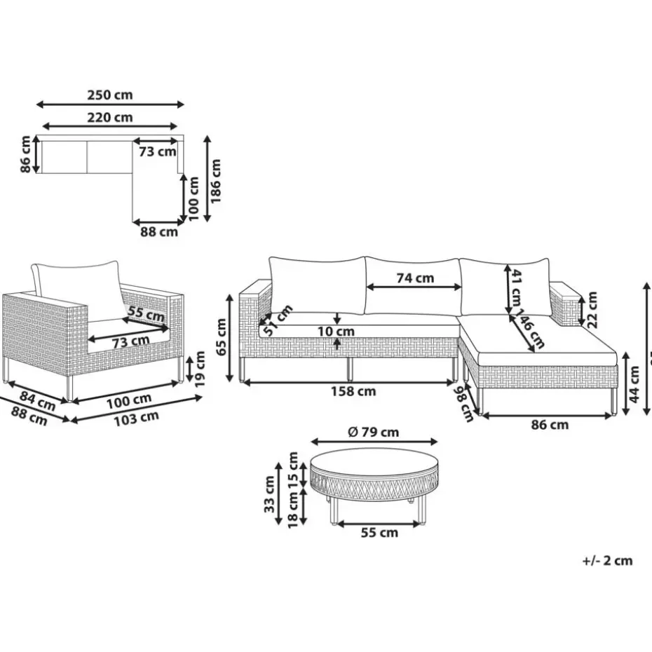 Afmetingen hoekbank: 250x186x65