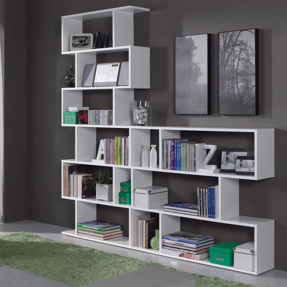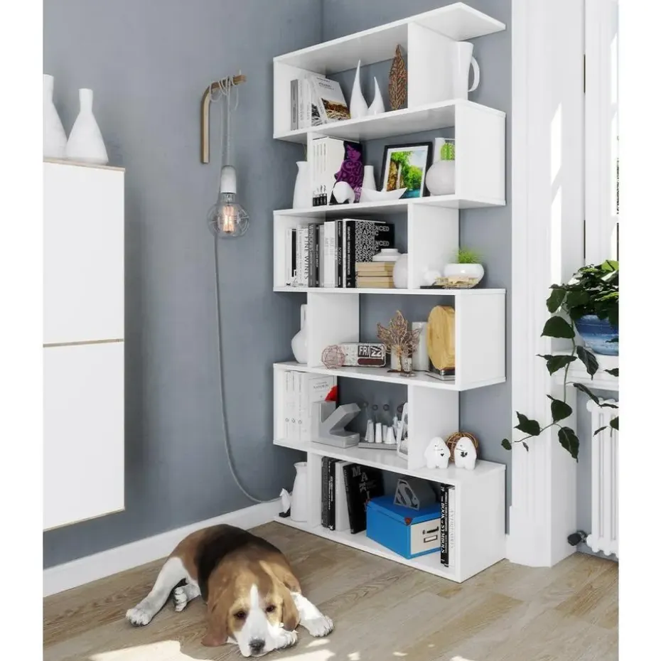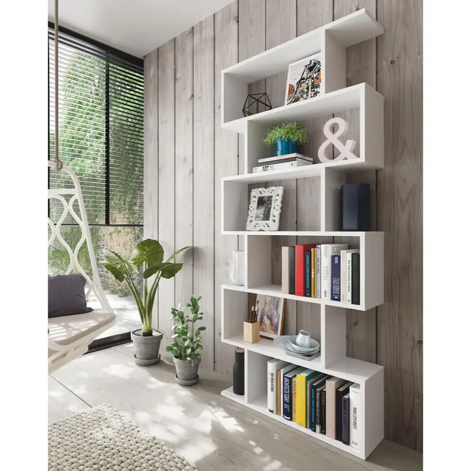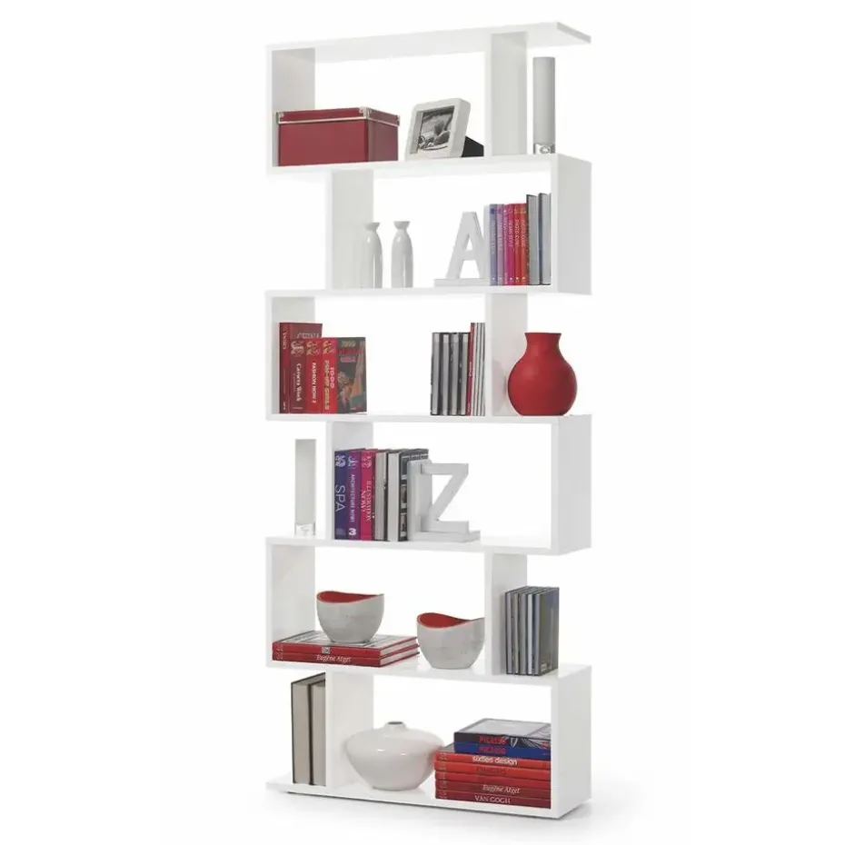 Deze boekenkast met 6 compartimenten biedt je de mogelijkheid om veel spullen, zoals boeken of decoratieve objecten, op te bergen zonder de vloerruimte in beslag te nemen. De eigentijdse stijl past bij alle interieurstijlen.Productkenmerken:Boekenkast met 6 compartimenten.Spaanplaten met een melamine oppervlak. Compartimenten van 30 cm hoog en 59 cm breed, ABS-voetjes tegen geluid en krassen.Verkrijgbaar in 2 kleuren: Canadese eik/ Hoogglans wit.Afmetingen van het product:Lengte 80 cm x Breedte 24 cm x Hoogte 192 cm – Nettogewicht: 27,8 kg.Afmetingen van het pakket:Pakket nr. 1: Lengte 51 cm x Hoogte 147 cm x Diepte 8 cm – Bruto gewicht: 28,3 kg.