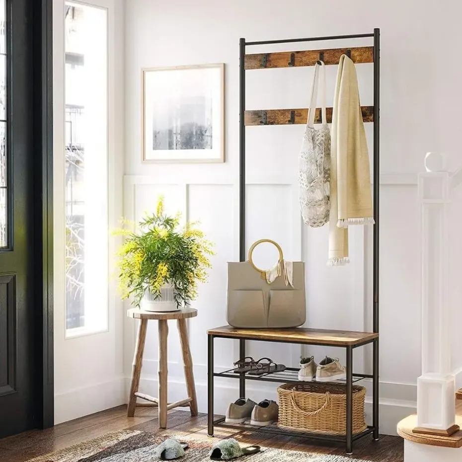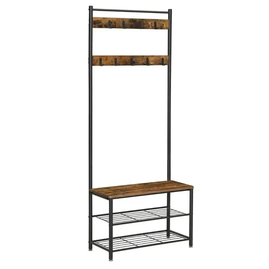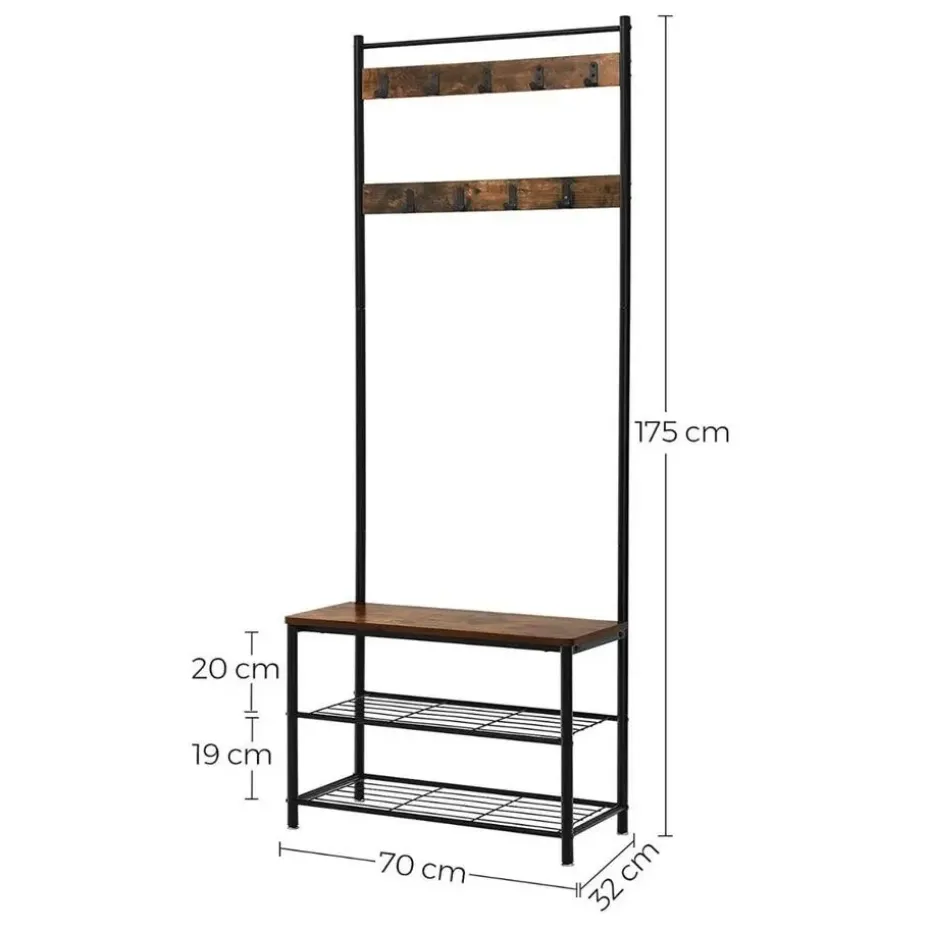 Productkenmerken: Multifunctioneel opbergmeubel voor industriële entree. Een schoenenbank en een schoenenrek. Perfect om kleding op te hangen, schoenen te organiseren en te zitten om uw schoenen aan of uit te trekken, deze veelzijdige gangopbergunit voldoet aan al uw behoeften. 8 haken om jassen, jacks, petten en sjaals op te hangen… Zitafmetingen: 70 x 30 cm (L x B). Statische draagcapaciteit van elke haak: 3 kg – max. Statische draagcapaciteit van de bank: 80 kg. Productafmetingen: Breedte 32,5 cm x Lengte 70 cm x Hoogte 175 cm – Nettogewicht: 8,7 kg. Verpakkingsafmetingen: Breedte 11 cm x Hoogte 46 cm x Diepte 78,5 cm – Brutogewicht: 8,7 kg.