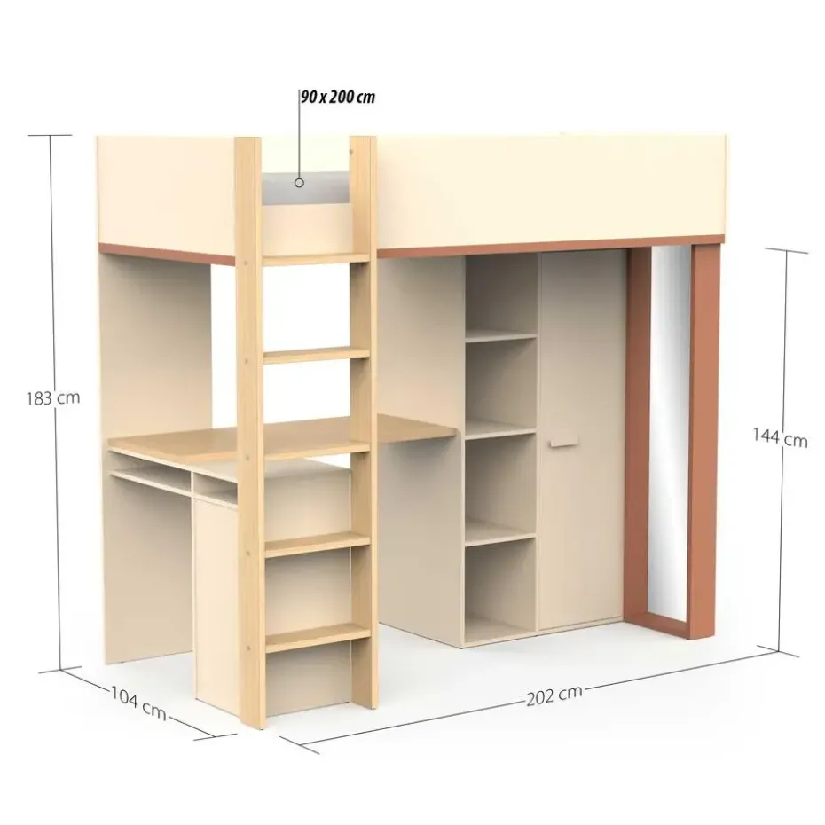 - Drie functies: bureau + bed + kast. Robuust en duurzaam ontwerp, ruimtebesparend, modern en gezellig design.