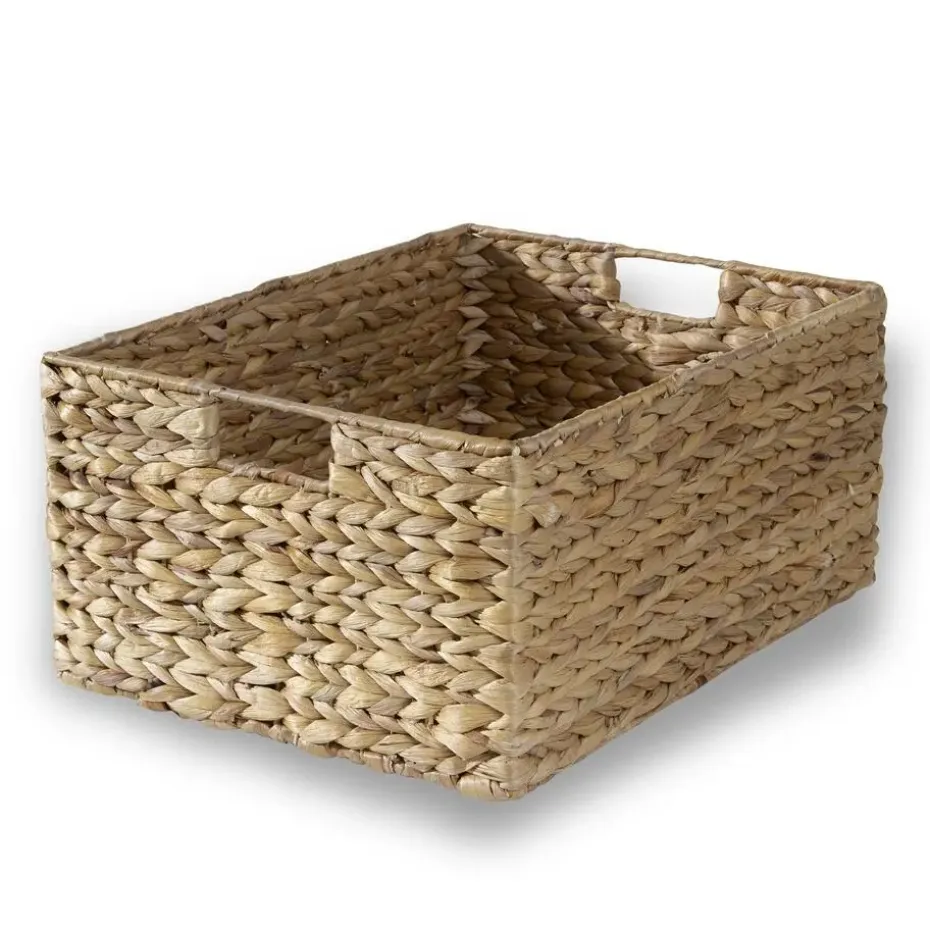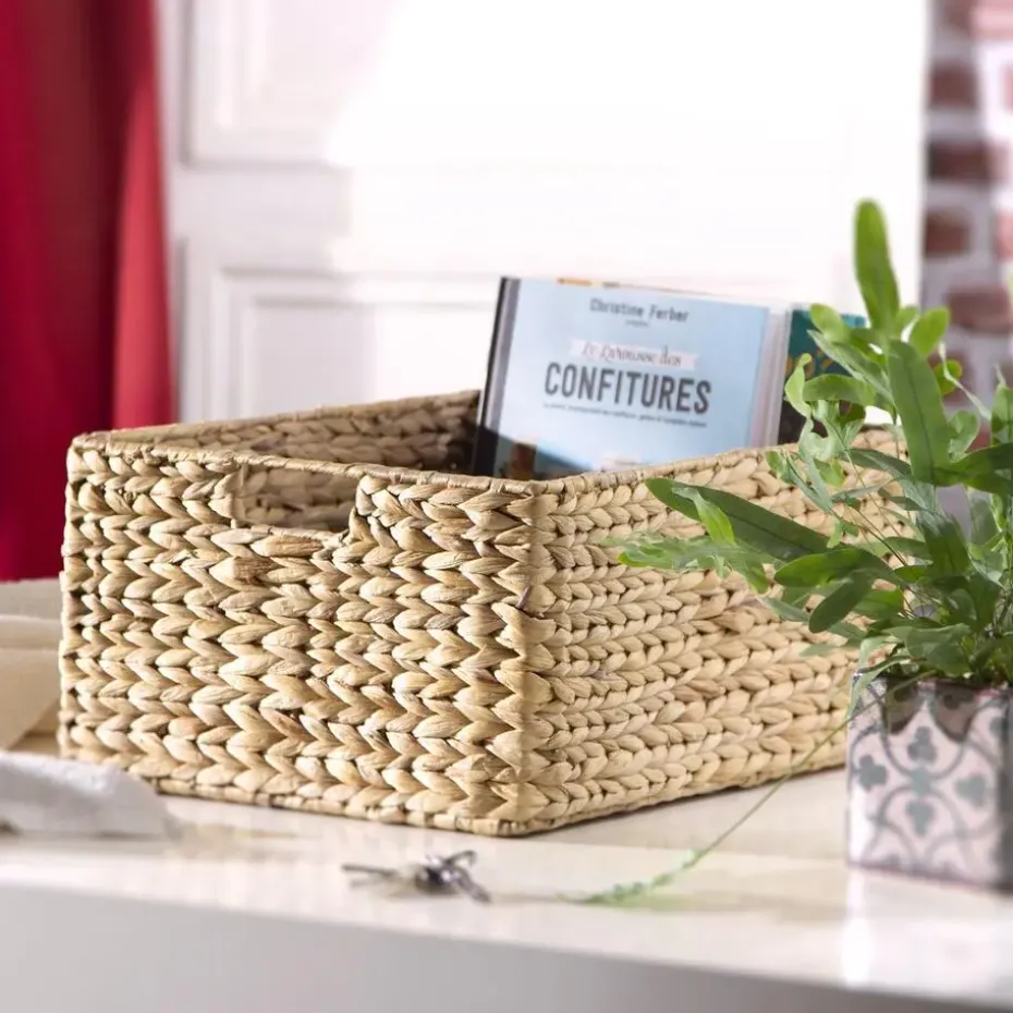 De waterhyacint mand biedt een groot volume aan opbergruimte, om uw kleine spullen zoals handschoenen, sjaals of zonnebrillen in op te bergen. Met zijn moderne eigentijdse en gipsy stijl, zal Deze rechthoekige mand warmte en natuurlijkheid toevoegen aan uw huis. De waterhyacint is geweven op het metalen frame van de mand, om de weerstand tegen schokken te versterken. Materiaal: Waterhyacint Afmetingen: B 45 x D 33 x H 20 cm