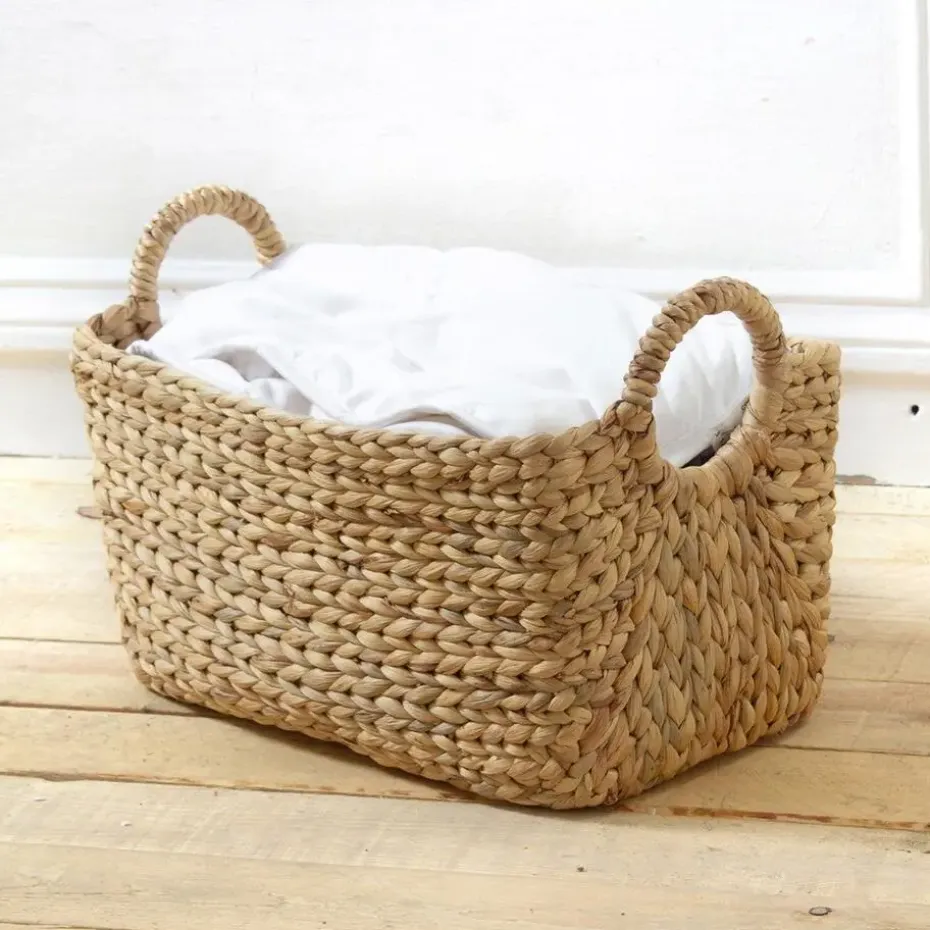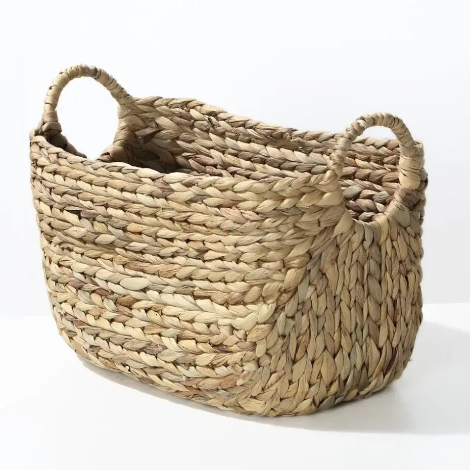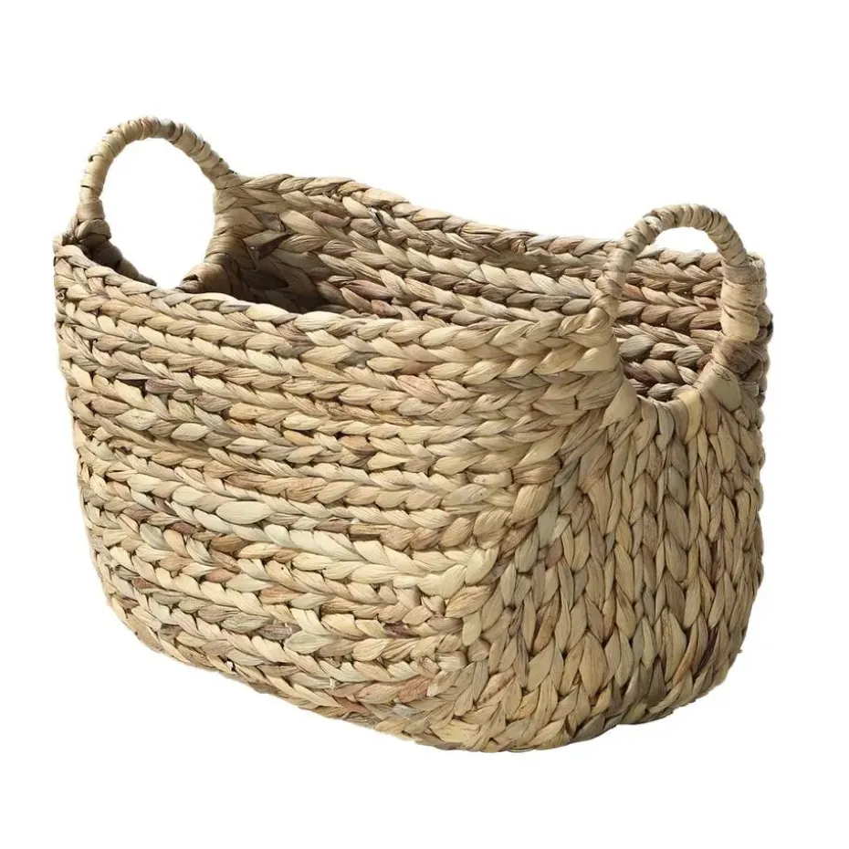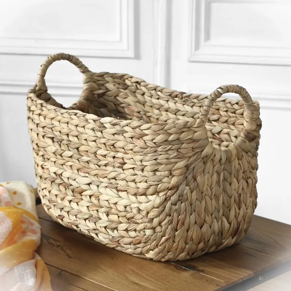De Water Hyacinth Rechthoekige Mand met Ronde Handvaten – Medium is een stijlvolle opbergmand. Deze mand is gemaakt van waterhyacint, geweven langs het metalen frame. De zomerse kant van Deze rechthoekige mand zal uw kamers opfleuren en zal in overeenstemming zijn met een natuurlijke decoratie. De mand is uitgerust met twee handgrepen aan elke kant voor transport. Voor een unieke decoratie kan het worden geassocieerd met andere soortgelijke manden en van verschillende grootte om reliëf en meer opslag te brengen. Materiaal: Waterhyacint Afmetingen: B 40 x D 23 x H 26 cm