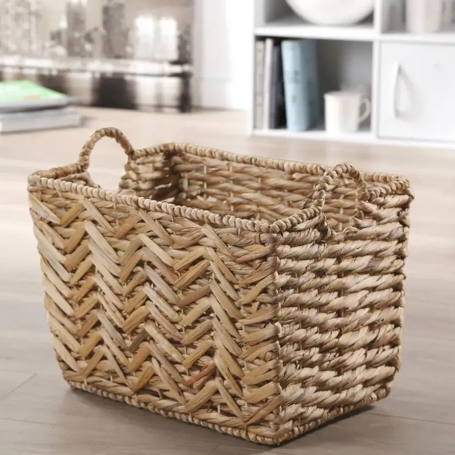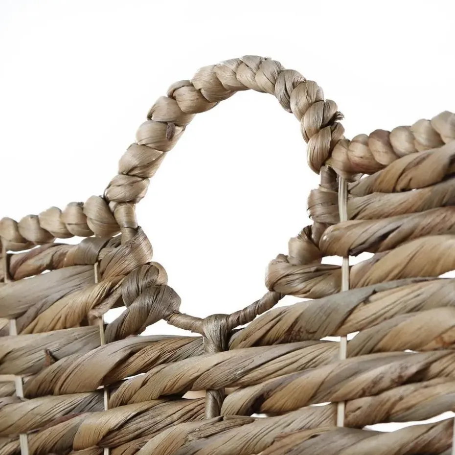 Ontdek deze waterhyacint mand! Het stelt je in staat om je spullen naar wens te organiseren. Het middelgrote formaat is perfect voor elke ruimte, waar je gemakkelijk je objecten en benodigdheden kunt opbergen. Het strakke ontwerp past in elke kamer, of het nu in een kleedkamer of woonkamer is, deze mand voegt een natuurlijk tintje toe aan je interieur.Productkenmerken:Fantasievol vlechtwerk.Metalen structuur.2 ronde handgrepen.Productafmetingen: Lengte 46 cm x Breedte 33 cm x Hoogte 32 cm – Nettogewicht: 1,7 kg.Verpakkingsafmetingen: Pakket nr. 1: Lengte 54 cm x Hoogte 43 cm x Diepte 40 cm – Bruto gewicht: 6,5 kg.