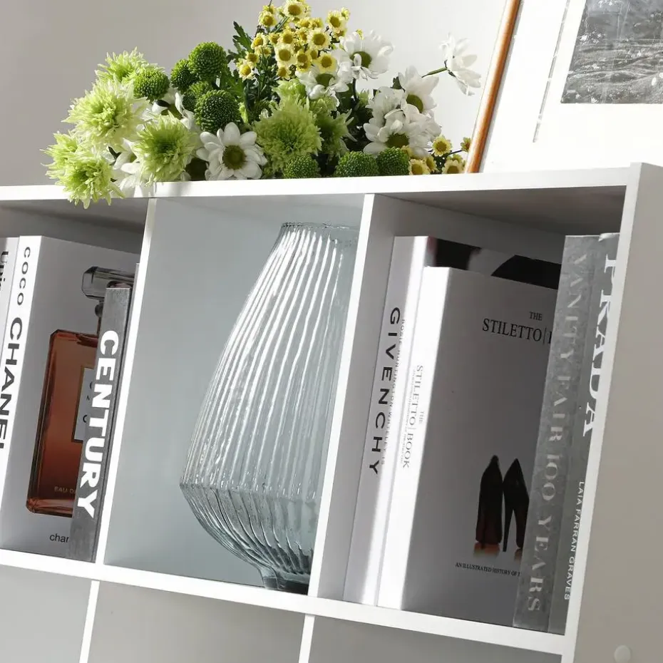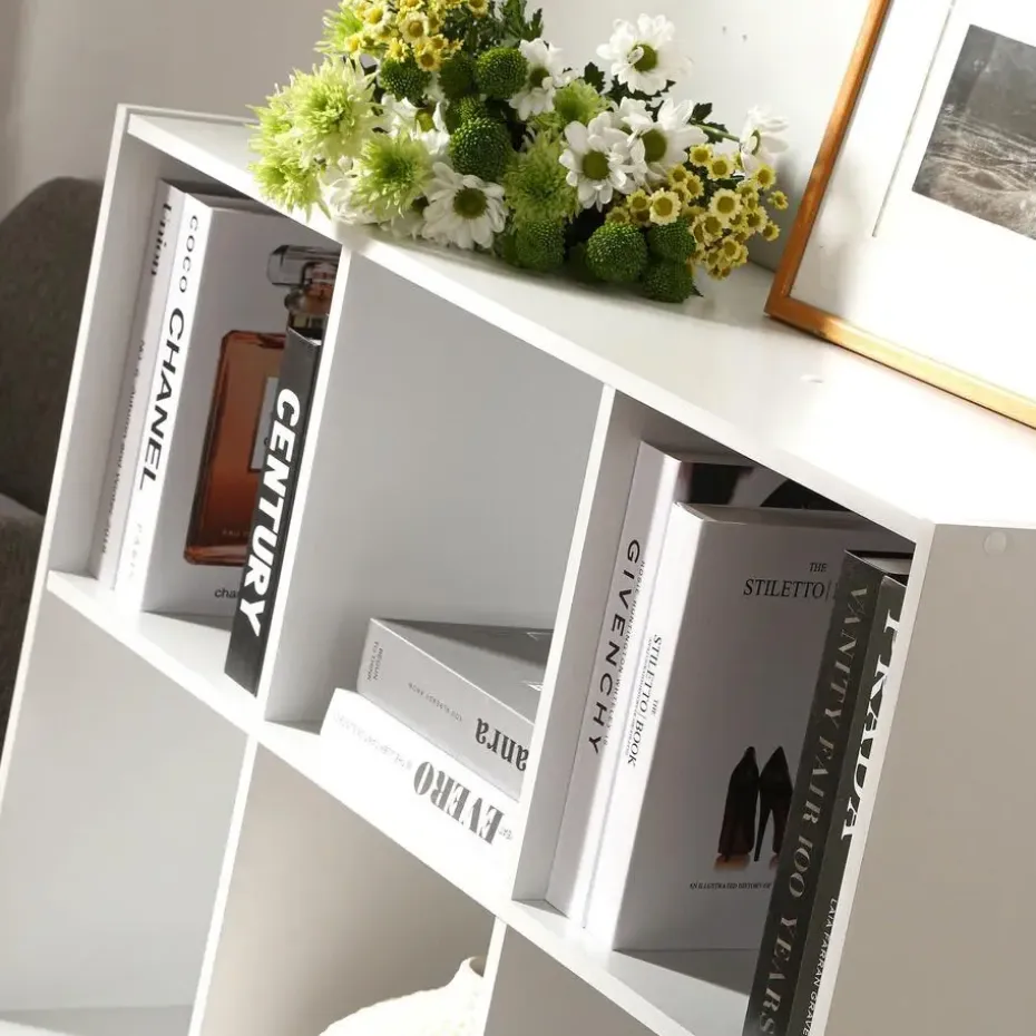 Kubusopbergmeubel – 9 kubussenOpbergmeubel – 9 kubussen bestaat uit 5 open kubussen en 4 gesloten kubussen onderaan. Deze kubusopbergmeubel is zeer praktisch om uw schoenen, boeken, kleren, speelgoed, decoratieve voorwerpen in op te bergen. Geniet van zijn eigentijdse stijl, die uw omgeving een nieuw leven zal inblazen, zijn kleur zal passen bij al uw meubels. Deze opbergmeubel is ideaal voor uw woonkamer of eender welke kamer van uw huis. Kubusopbergmeubel – 9 kubussenVerkrijgbaar in zwart, eiken, wit. Materiaal : Structuur in spaanplaat Afmetingen : 92,5 x 29,5 x 92,5 cm Gewicht : 22,88 kg