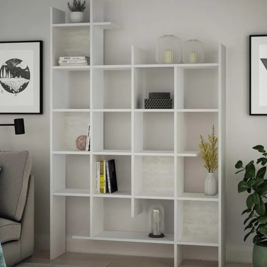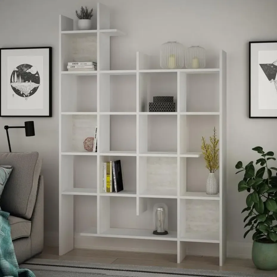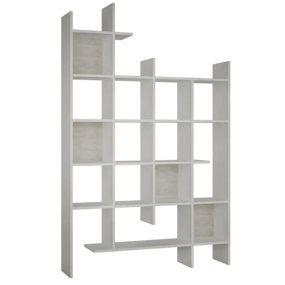 Productkenmerken: Gemaakt van 100% melamine spaanplaat. FSC-gecertificeerd, wat aangeeft dat het product is gemaakt van 100% gerecycled hout afkomstig uit duurzaam beheerde bossen. Onze boekenkast kan eenvoudig aan de muur worden bevestigd. Productafmetingen: breedte 25,5 cm x lengte 122 cm x hoogte 188 cm – nettogewicht: 44,42 kg. Verpakkingsafmetingen: Verpakking nr. 1: lengte 189,5 cm x hoogte 30,7 cm x diepte 12 cm – brutogewicht: 21,3 kg. Verpakking nr. 2: lengte 127,5 cm x hoogte 30,7 cm x diepte 17 cm – brutogewicht: 24,5 kg. Totale brutogewicht: 45,8 kg.