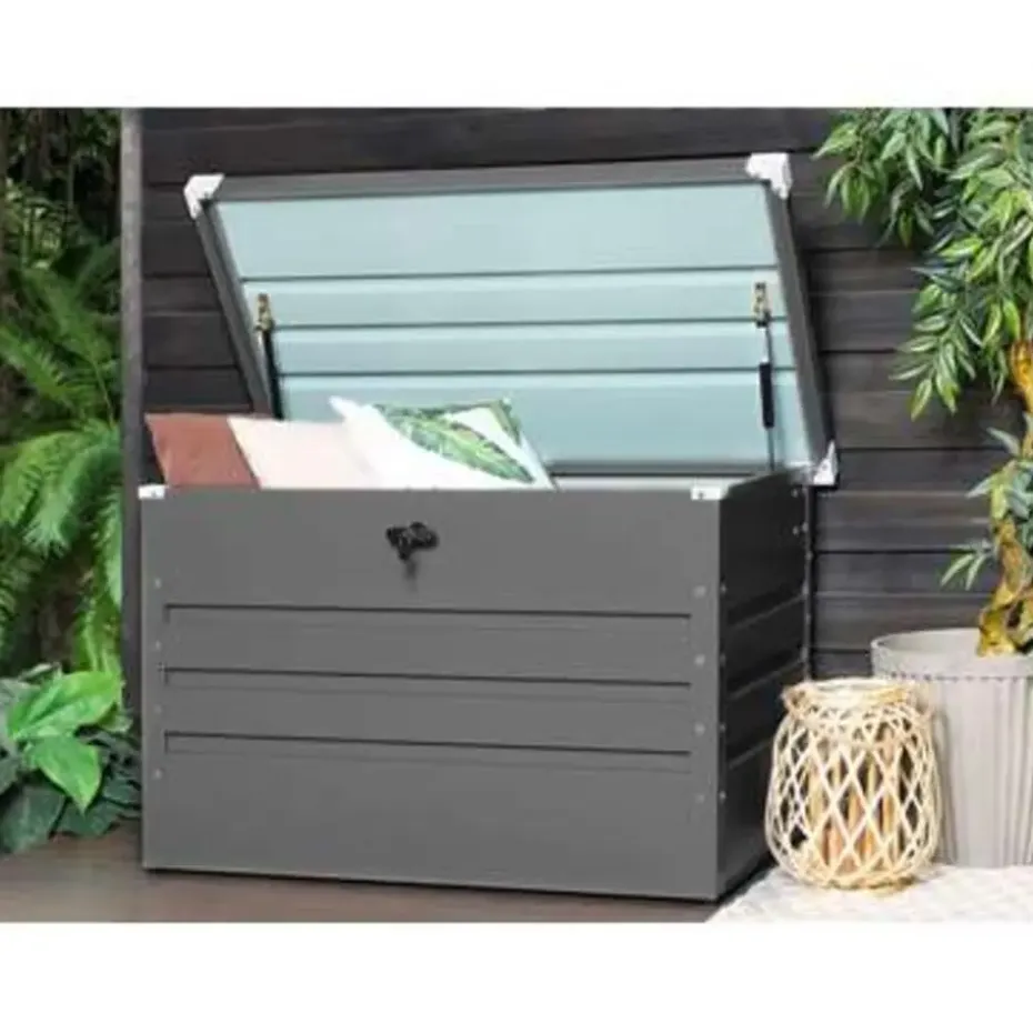 Belangrijkste eigenschappen: Klassiek design, Stabiele en duurzame constructie, Speciaal gemaakt voor gebruik buitenshuis, UV-bestendigheidsklasse, 100% waterdicht, Met sleutel afsluitbaar voor veilig bewaren, Stabiel op ongelijke oppervlakken, Functionele, grote opbergruimte