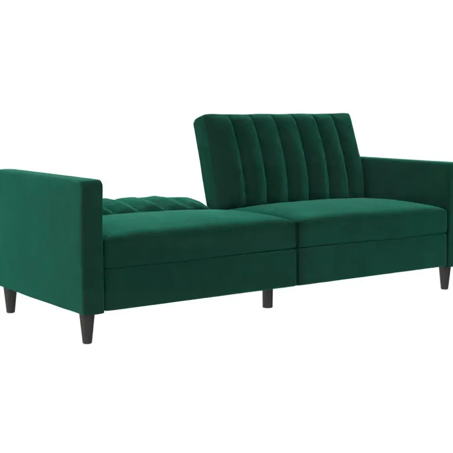Deze slaapbank heeft een moderne stijl. Het is gemaakt van gefabriceerd hout en een fluwelen hoes. De vulling is gevuld met schuim voor meer comfort. Het heeft een uitbreidbaar slaapoppervlak en is dus zowel een slaap- als rustzone. De slaapbank is handmatig verstelbaar.