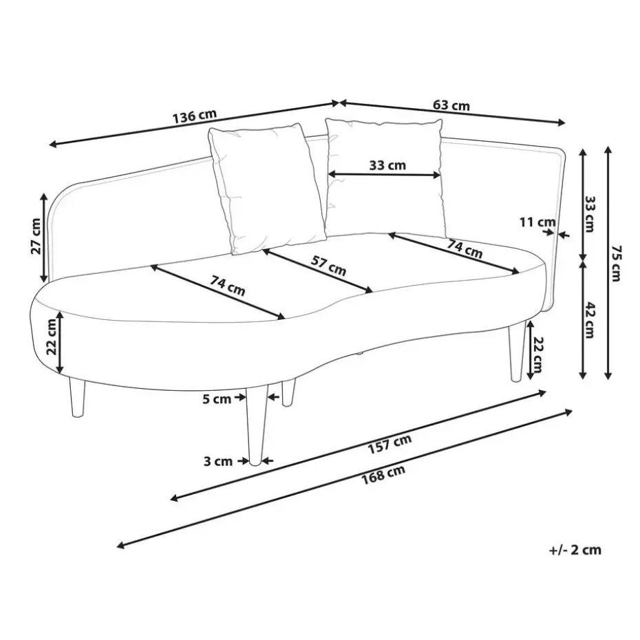 Belangrijkste eigenschappen: Ontspannende zitpositie, Modern design, Past uitstekend in elk interieur, Hoogwaardig materiaal, Zijdezacht, fluwelen stof, Verwijderbare kussenhoezen, Beschermdoppen voor oppervlaktebescherming