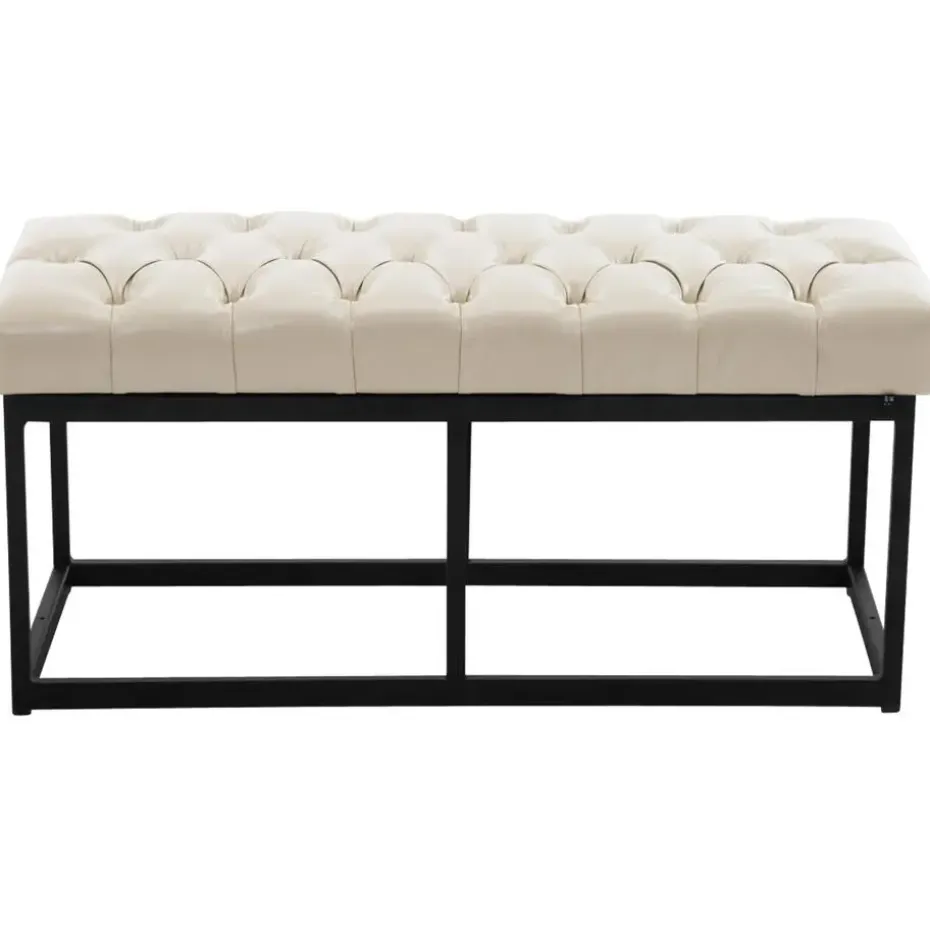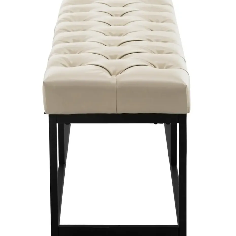 De gewatteerde bekleding is bedekt met gemakkelijk te onderhouden en duurzaam kunstleer. De gestoffeerde bank integreert flexibel en mooi in elke ruimte, of het nu in de woonkamer, hal, eetkamer of slaapkamer is.