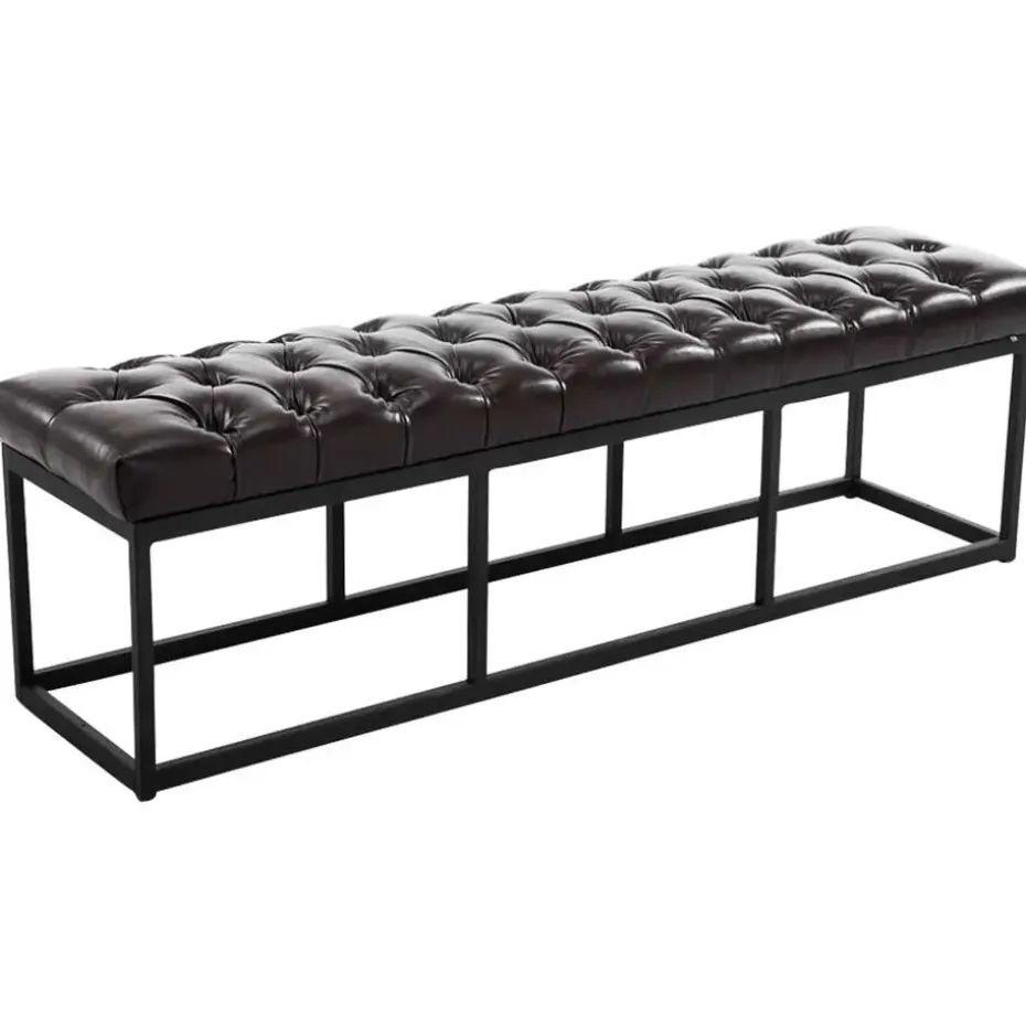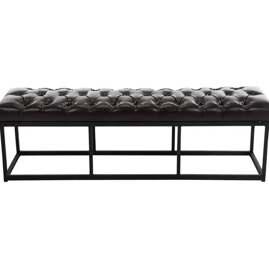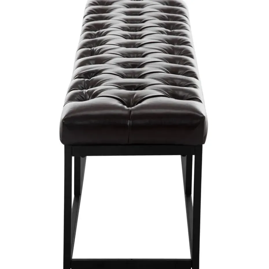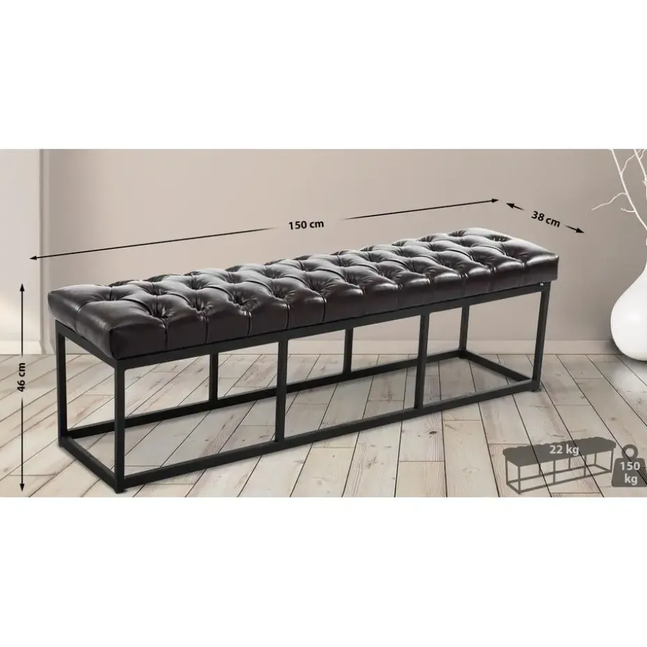 De gewatteerde bekleding is bedekt met gemakkelijk te onderhouden en duurzaam kunstleer. De gestoffeerde bank integreert flexibel en mooi in elke ruimte, of het nu in de woonkamer, hal, eetkamer of slaapkamer is.